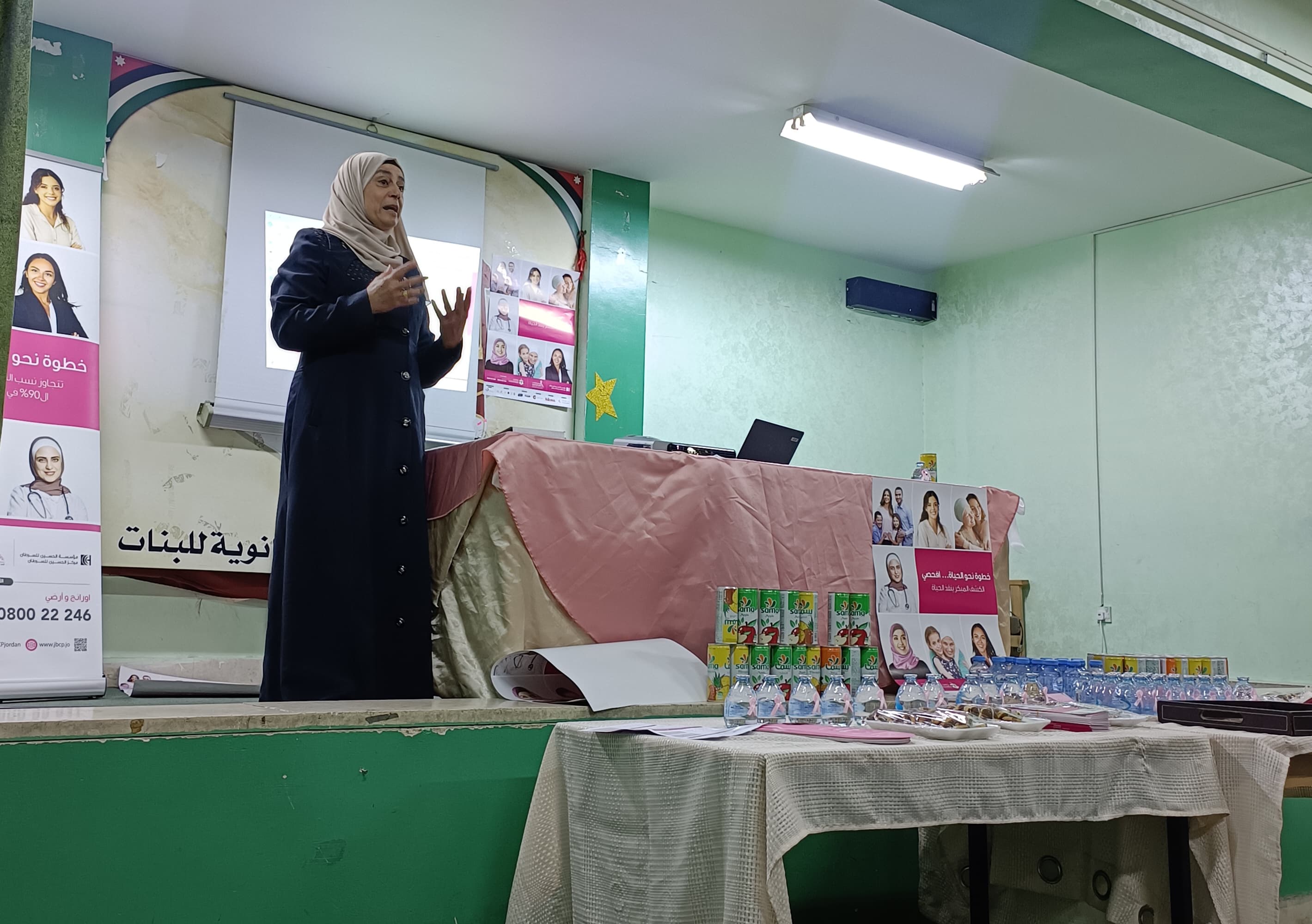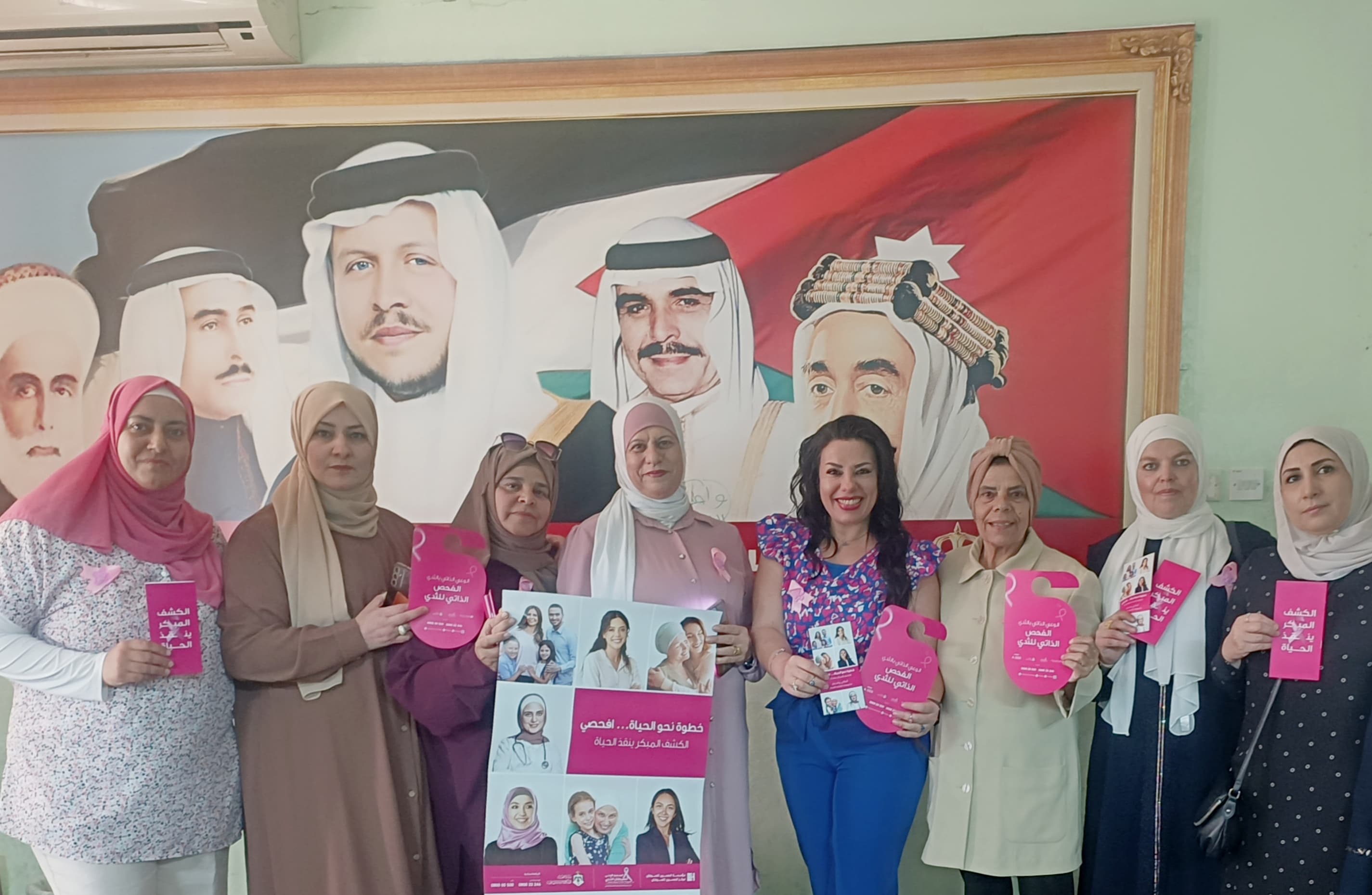 اقامت جمعية مساندة أهالي واسر مرضى السرطان الخيرية اليوم الوردي بمناسبة شهر أكتوبر بالتعاون مع مؤسسة الحسين للسرطان في مدرسة إسكان الجامعة الثانوية للبنات بحضور اللواء عبدالله الحسنات و مجموعة من سيدات المجتمع المحلي وأولياء أمور طلبة المدرسة والمهتمين وقدمت المحاضرة السيدة أزهار النصر من مؤسسة الحسين للسرطان كما وقامت بالكشف السريري لمجموعة من السيدات وتحويل عدد منهم لعمل صورة ماموغرام ، وتم توزيع عدد من المنشورات الخاصة بالتوعية بمرض سرطان الثدي