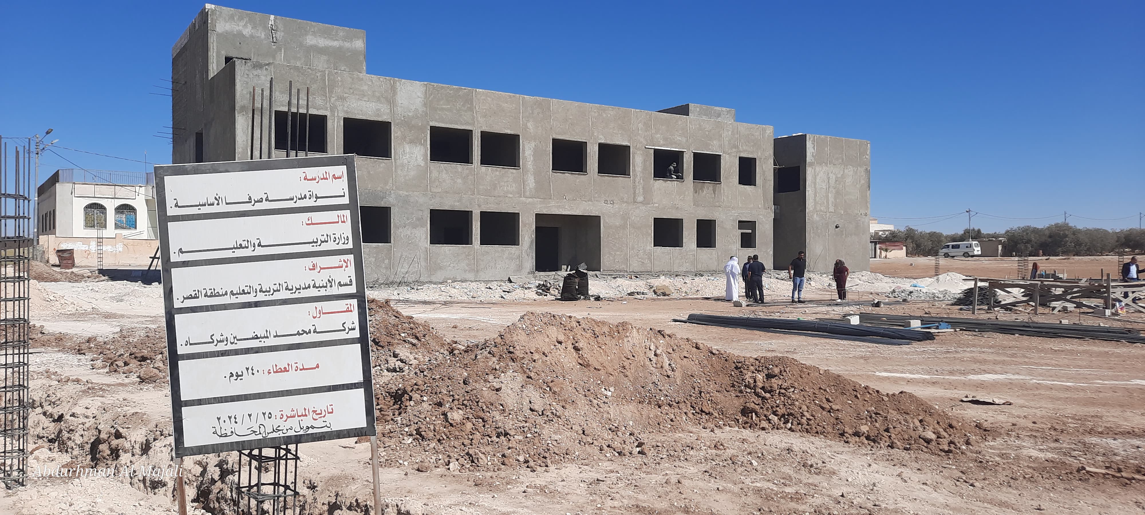 تفقد مدير التربية والتعليم لمنطقة القصر الدكتور علي الفقرا مشروع بناء نواة مدرسة صرفا الاساسية للبنين يرافقه رئيس قسم التخطيط السيد حمدي الليمون والمحرر الصحفي السيد عبد الرحمن المجالي .