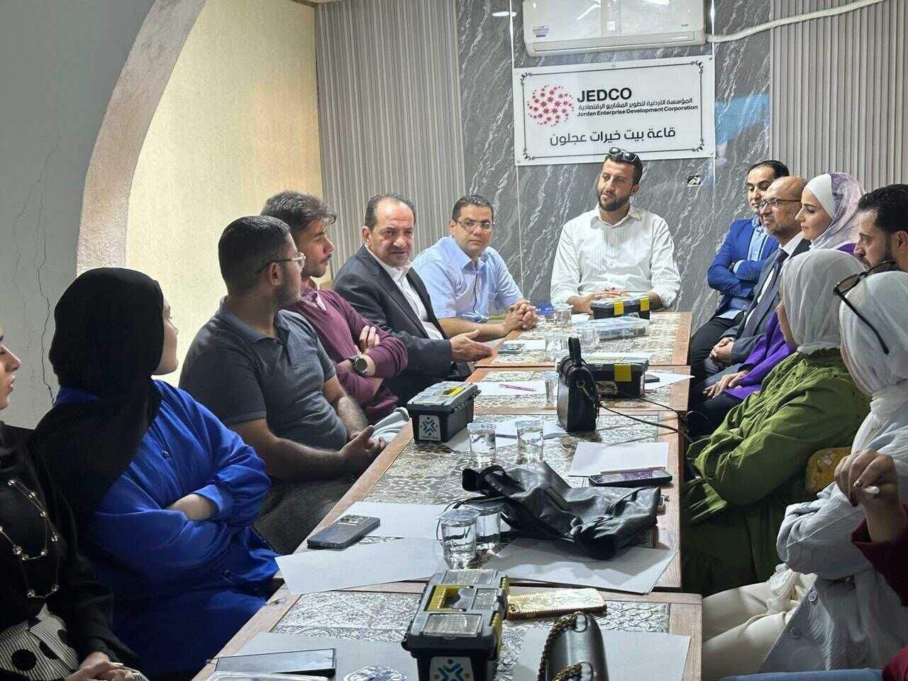 استضافت غرفة تجارة عجلون اليوم السيد عبدالفتاح الكايد المدير التنفيذي للمؤسسة الأردنية لتطوير المشاريع الاقتصادية في اجتماع مع مجلس إدارة الغرفة في مبناها الجديد بالمحافظة، وقد رحب السيد عرب الصمادي رئيس مجلس إدارة الغرفة بالكايد حيث أشاد بدور المؤسسة في دعم مجموعة من المشاريع الصناعية والسياحية والخدمية في المحافظة والتي تم افتتاحها مؤخرا، كما تم مناقشة سبل التوسع في دعم المشاريع الصغيرة في المحافظة خاصة التي ستساهم في تطوير الخدمات السياحية والتجارية في ظل التوجهات الرسمية لدعم المجتمع المحلي والاستفادة من المشاريع الكبرى في المحافظة، وأكد الكايد على استعداد المؤسسة الكامل للتعاون مع غرفة التجارة في عجلون بمختلف المجالات لزيادة حجم الدعم المقدم للمشاريع وفق الأسس والمعايير المعتمدة وبما يساعد في تحقيق أهداف التنمية المستدامة في المحافظة.