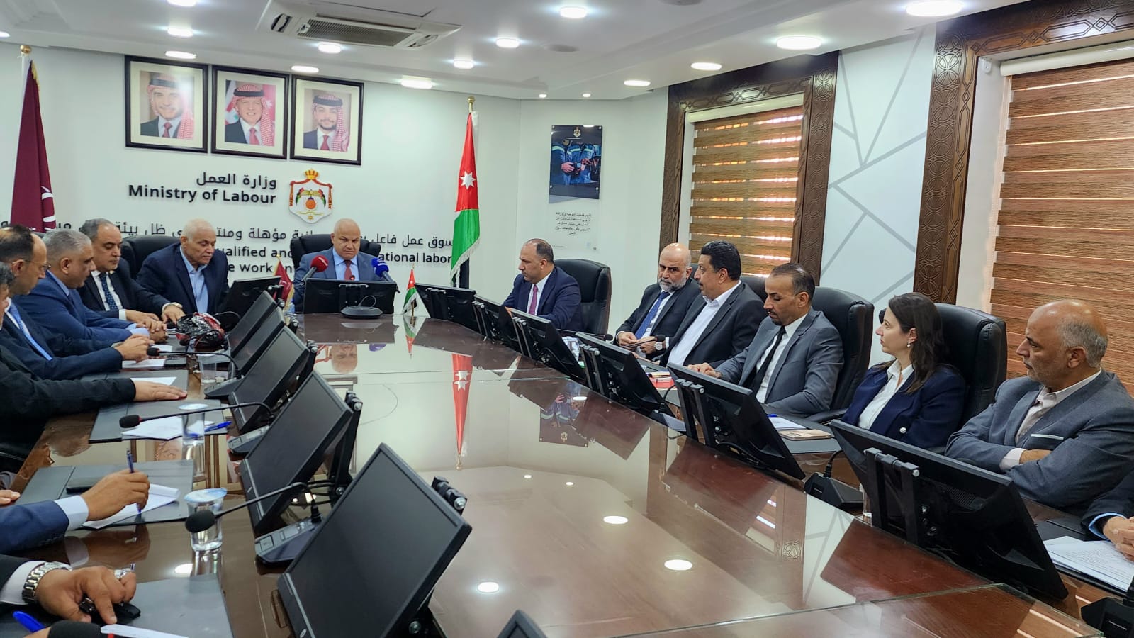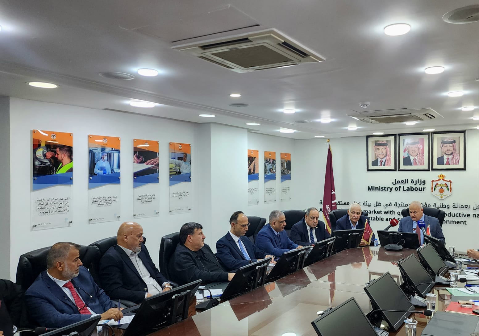 وأكد الوزير أن الوزارة تعمل على الإشراف على حل النزاعات العمالية والمساهمة في تعزيز الاستقرار والأمن الوظيفي لدى العاملين في مؤسسات القطاع الخاص وبما يضمن استمرارية عمل هذه المؤسسات، من خلال بناء علاقات عمل جيدة بين أطراف الإنتاج الثلاثة (حكومة، أصحاب عمل، عمال) وتوفير بيئة عمل ايجابية في المؤسسات، والإشراف على عقود العمل الجماعية في المؤسسات بما يحقق مصلحة الطرفين.