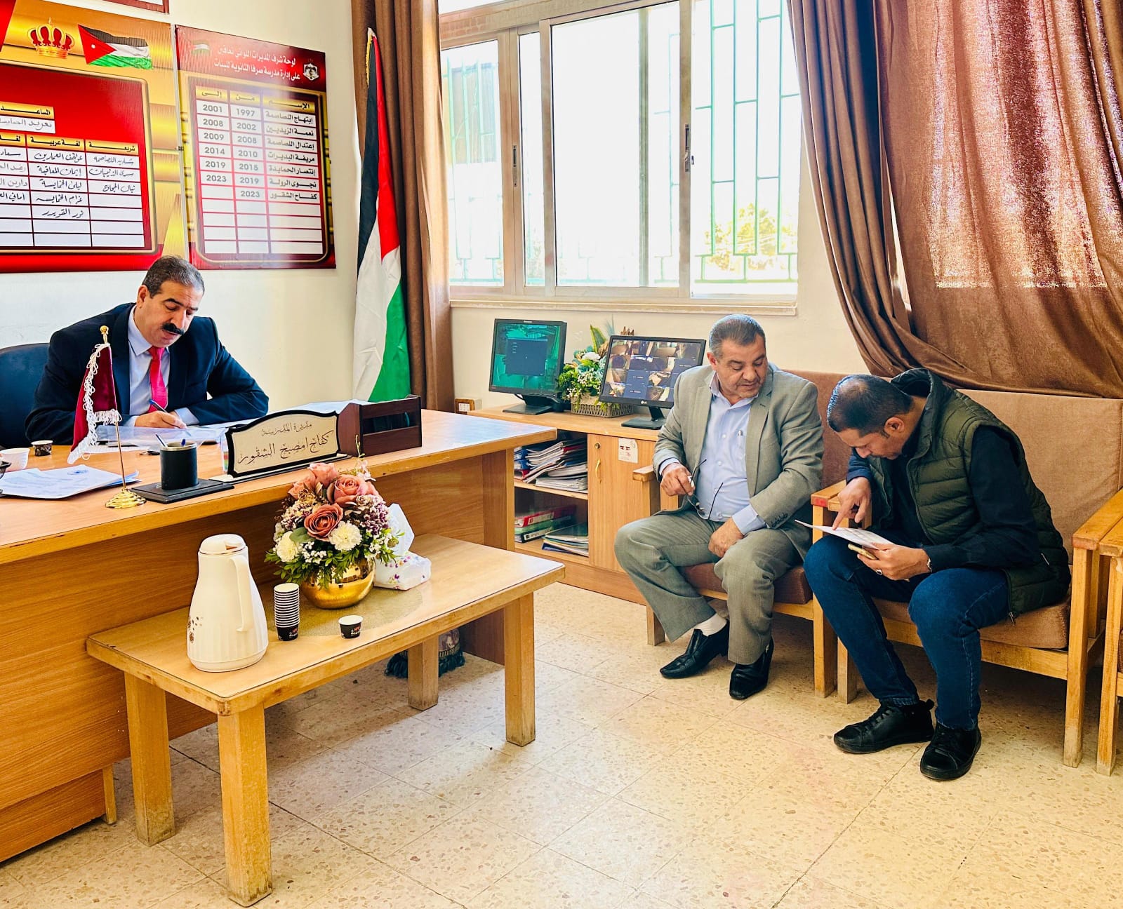 كما اكد الفقرا على ضرورة تطبيق اسس النجاح والاكمال والرسوب وادخال علامات التقويم الاول على المنظومة بشكل فوري مقدما شكره وتقديره لمديري ومديرات المدارس صرفا الثانوية للبنات السيدة كفاح الشقور ومديرة مدرسة رفيدة الاسلمية السيدة أمل اللصاصمة ولمدير مدرسة صرفا الاساسية للبنين السيد ليث اللصاصمة ولمديرة مدرسة صرفا الاساسية المختلطة السيدة عاهدة الذنيبات وللكادر الاداري والتدريسي في مدارسهم على الجهود المميزة التي يبذلونها في خدمة العملية التعليمية التعلمية.