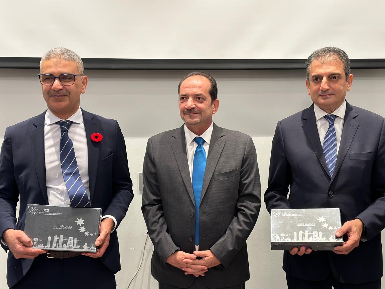 احتفلت المؤسسة الأردنية لتطوير المشاريع الإقتصادية (JEDCO) اليوم بتخريج سبعة وعشرين مدرّبا في مجال التجارة الدولية من برنامج "تطوير Export Launchpad Jordan" والذي تنفّذه المؤسسة وبالشراكة مع المؤسسة الدولية الإسلامية لتمويل التجارة التابعة لمجموعة البنك الإسلامي للتنمية ضمن مبادرة "المساعدة من أجل التجارة للدول العربية" (AFTIAS 2.0) ، والشؤون العالمية الكندية، ومكتب تسهيل التجارة الكندي.وشكر المدير التنفيذي للمؤسسة الأردنية لتطوير المشاريع الاقتصادية عبد الفتاح الكايد في كلمة له أثناء الحفل جميع الجهات المعنية المحلية والدولية على دعمهم لهذا البرنامج، وأكد بدوره على أهميته في تعزيز قدرات الأردن التصديرية وتشجيع النمو الاقتصادي الشامل والمستدام.وأضاف الكايد أن نجاح هذا البرنامج يعكس التزام المؤسسة بتعزيز ورفع جاهزية وكفاءة الشركات الأردنية للتصدير، وذلك من خلال تزويد الموظفين العاملين في المؤسسات الوطنية المعنية بالتجارة والتصدير بالمعرفة والخبرة اللازمة، حيث يتم تمهيد الطريق أمام الشركات الأردنية للنجاح والوصول إلى العالمية. ويعد هذا التعاون مع المؤسسة الدولية الإسلامية لتمويل التجارة ومكتب تيسير التجارة في كندا خطوة أساسية نحو تحقيق النمو الاقتصادي المستدام.وهنّأ سفير كندا لدى المملكة الأردنية الهاشمية طارق علي خان، المدرّبين المؤهلين على إكمالهم برنامج تدريب المدربين (ToT) وتمكّنهم من تدريب 52 شركة صغيرة ومتوسطة أردنية كجزء من هذا البرنامج والذي سيساهم في تعزيز الصادرات الأردنية إلى كندا ودول أخرى. وأضاف خان أن هؤلاء المدربين والشركات الصغيرة والمتوسطة التي تم تدريبها يعدّوا جزء من الجهود المشتركة للاستفادة من اتفاقية التجارة الحرة بين كندا والأردن لتعزيز تمكين المرأة اقتصاديًا ودعم النمو الاقتصادي الشامل في إطار رؤية التحديث الاقتصادي للحكومة الأردنية.يعد برنامج "تطويرExport Launchpad Jordan" مساعدة فنية تهدف إلى بناء الموارد البشرية في مجال التجارة الدولية من خلال تدريب موظفين من المؤسسة الأردنية لتطوير المشاريع الاقتصادية (JEDCO) والمؤسسات الوطنية الأخرى الداعمة للتجارة ومنظمات دعم الأعمال بالأدوات والقدرات اللازمة لتقديم تدريب محترف في التجارة وخدمات دعم تركّز على التصدير للمصدرين الأردنيين من الشركات الصغيرة والمتوسطة والمصدرين المحتملين. وأفاد أيمن قاسم من المؤسسة الدولية الإسلامية لتمويل التجارة بأن المؤسسة تعطي أولوية كبيرة للشركات الصغيرة والمتوسطة، كونها تمثل العمود الفقري للتنمية الاقتصادية، حيث تلعب هذه الشركات دوراً حيوياً في القطاع الخاص الأردني وتسهم في الناتج المحلي الإجمالي، مما يجعل تعزيزها وتطويرها ضرورياً لاستدامة الاقتصاد الأردني. وأضاف قاسم أنه من خلال هذا البرنامج وبالتعاون مع شركائنا: مكتب تسهيل التجارة في كندا والمؤسسة الأردنية لتطوير المشاريع الاقتصادية (JEDCO)، وتبيّن أن الأدوات والحلول الرقمية المقدّمة للشركات الصغيرة والمتوسطة في الأردن فرصة لتعزيز الكفاءة ودعم النمو والازدهار في الأسوق العالمية، ومن هذا المنطلق، يعتبر هذا البرنامج الذي يتماشى ويتوافق مع رسالة المؤسسة الإسلامية مبادرة هامة لتحقيق التعافي الاقتصادي. وأبدى المدير التنفيذي لمكتب تسهيل التجارة في كندا، ستيف تيبمان امتنانه للمؤسسة الدولية الإسلامية لتمويل التجارة في دعم دولها الأعضاء للوصول إلى الأسواق الدولية. حيث قدّم مكتب تسهيل التجارة في كندا من خلال هذا البرنامج خبراء قطاعيين ذوي خبرة دولية في تصميم وتقديم تدريبات فريدة لجاهزية التصدير.وأضاف تيبمان أنه وفي ظل التحديات التي يواجهها العالم بعد جائحة كوفيد-19، فإن التعاون مع المؤسسة الأردنية لتطوير المشاريع الإقتصادية ضمن برنامج "تطوير Export Launchpad Jordan" سيؤدي إلى زيادة وتنويع صادرات الشركات الصغيرة والمتوسطة الأردنية إلى العالم، والأمر الذي بدوره سيسهم في تحقيق النمو الاقتصادي الشامل والمستدام.