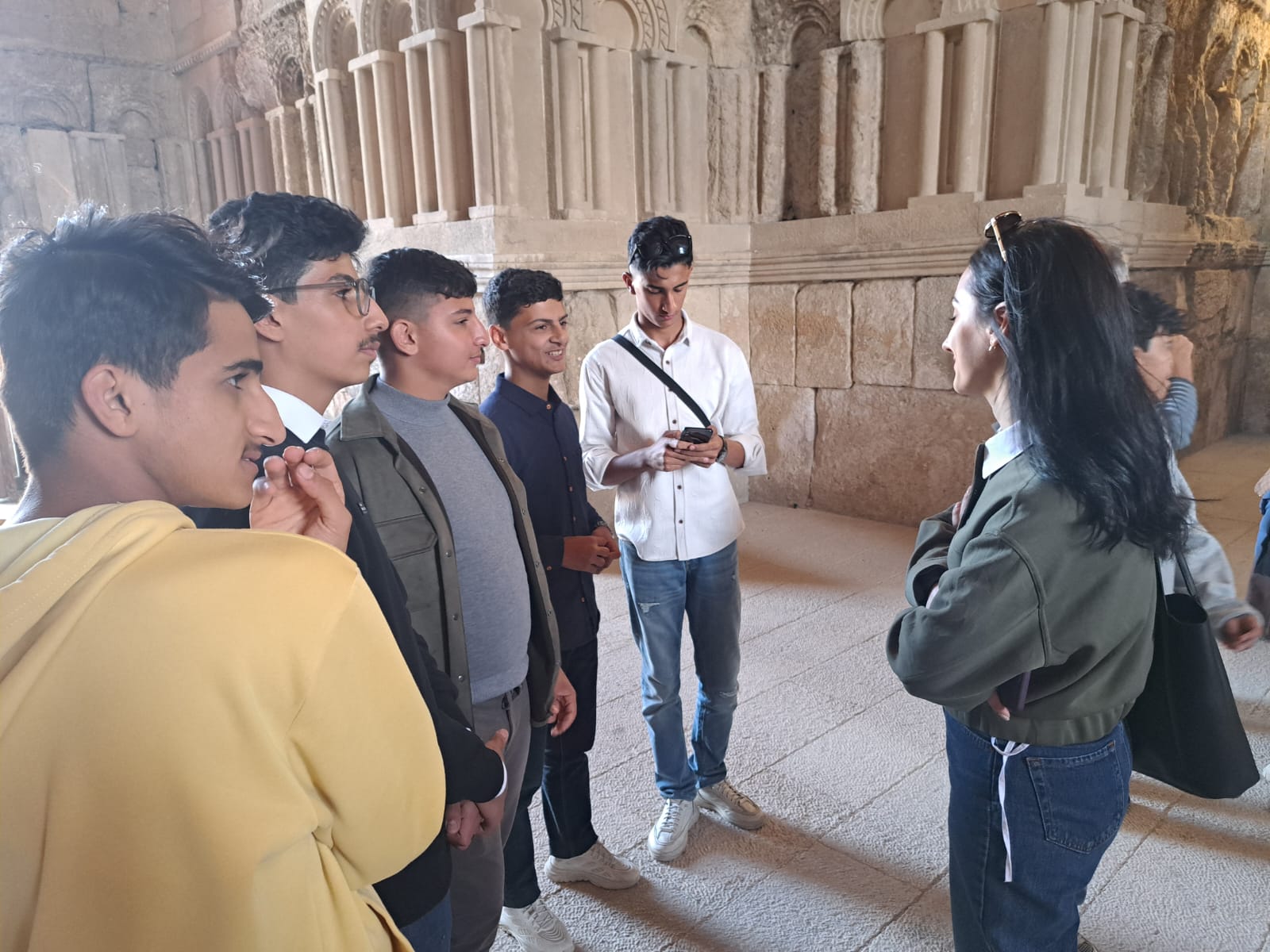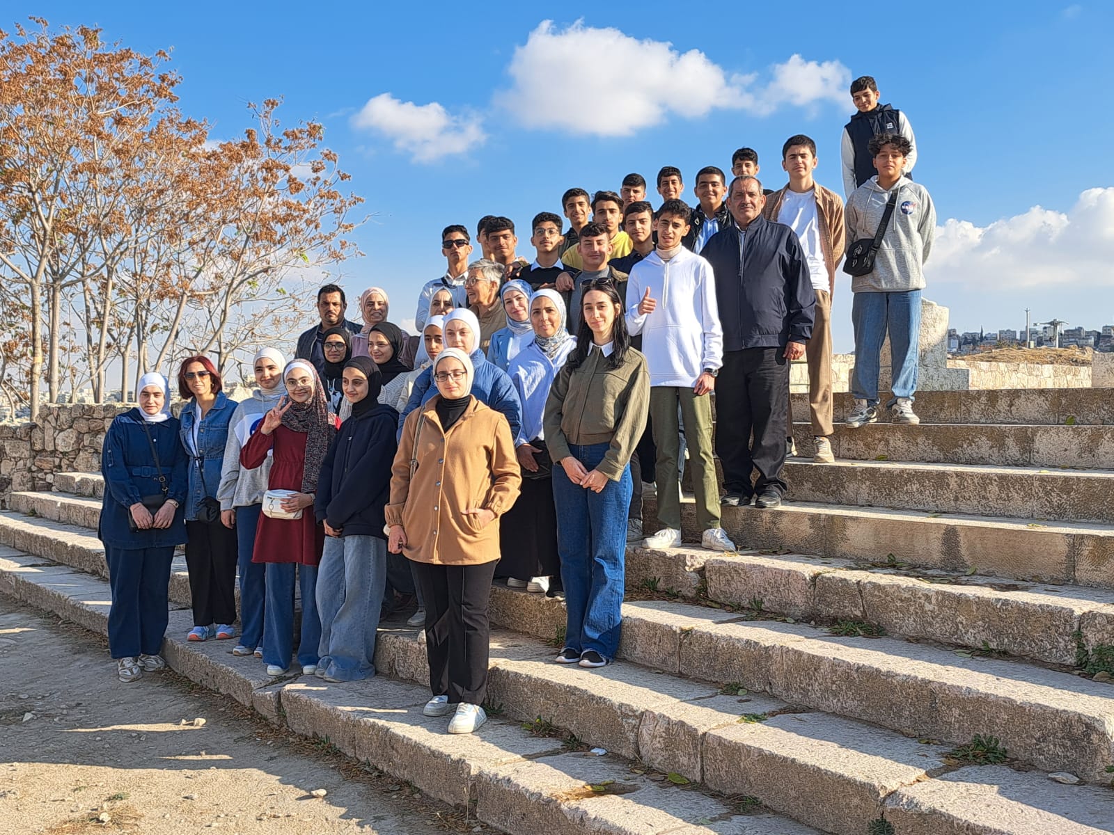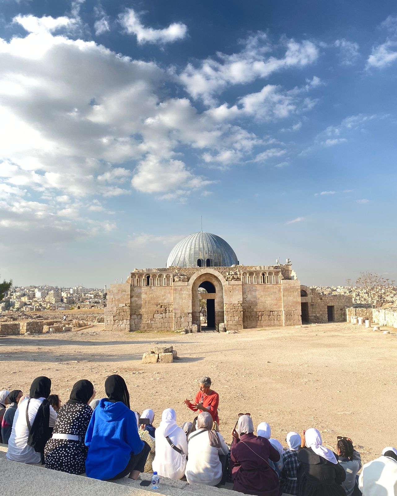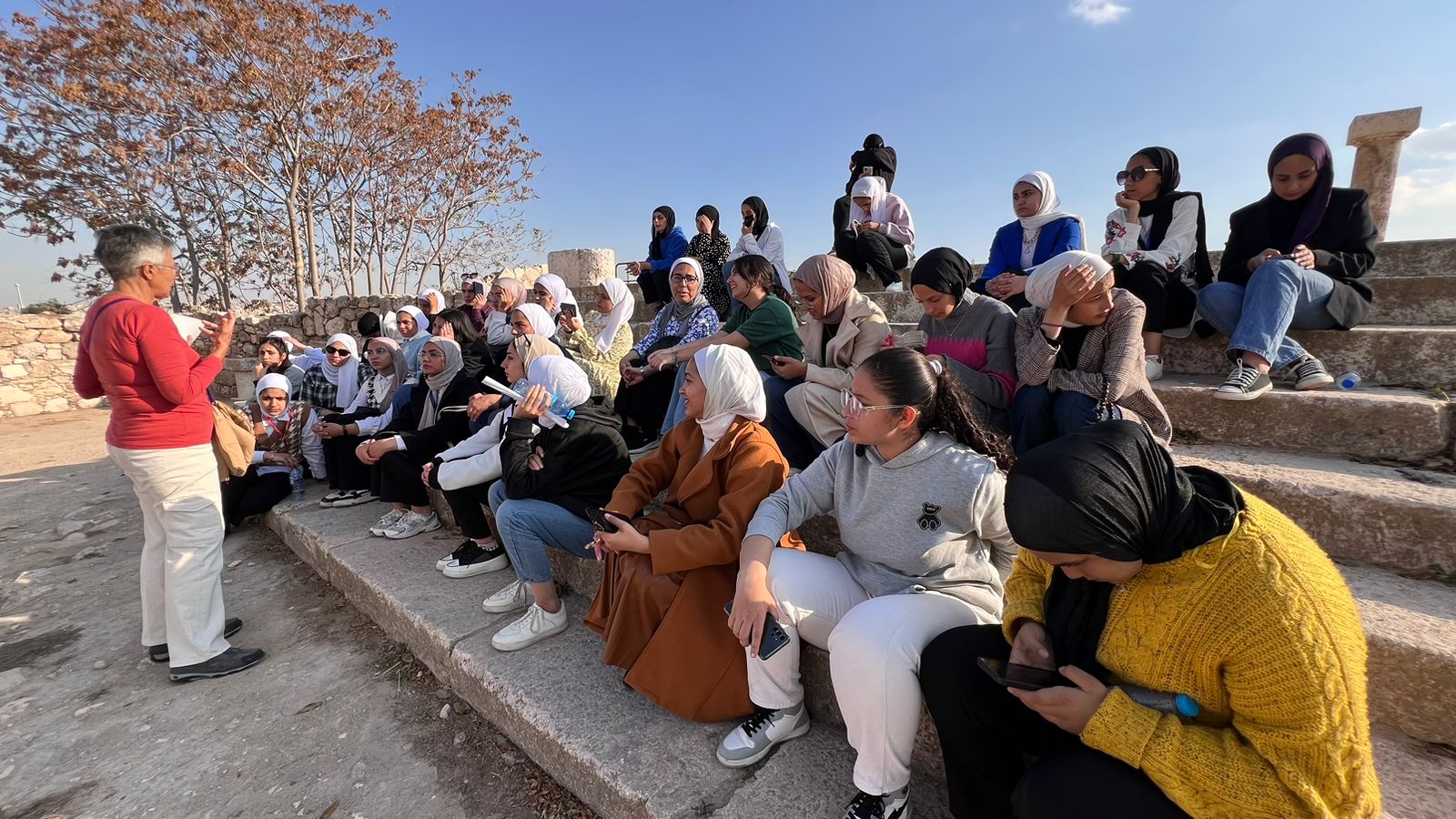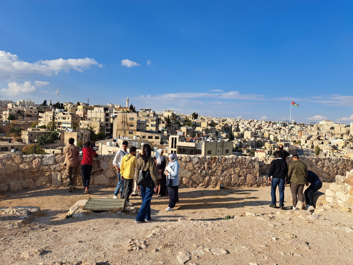 وبعد استراحة الغداء، كانت جولة ميدانية تثقيفية في قلعة عمّان بمواكبة من الدكتورة معكرون وفريق "جسور"، عبّر خلالها الطلاب عن الحماسة والفرح في ختام يوم وصفوه بأنه من "الأجمل"، وأعربوا عن حماستهم للمسودة الثانية من العروض التي سيبدأ التحضير لها بعد الزيارة الميدانية الى المواقع الأردنية المختارة من كل فريق.