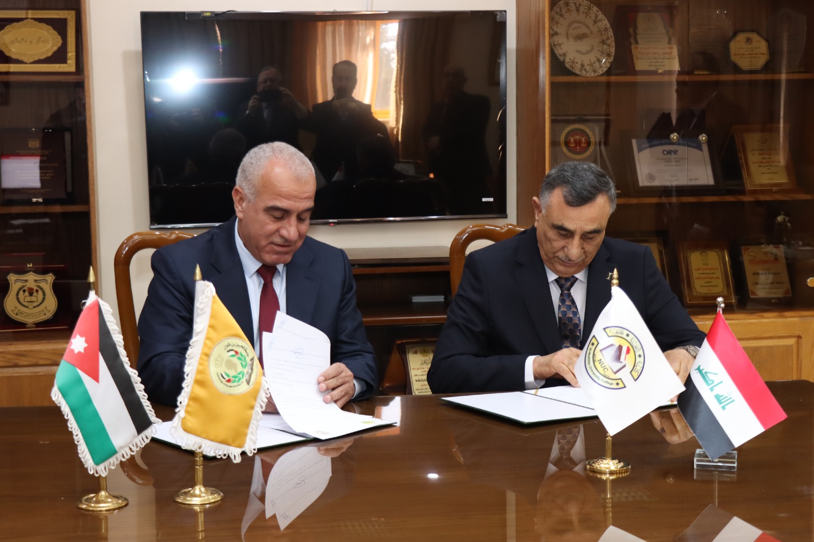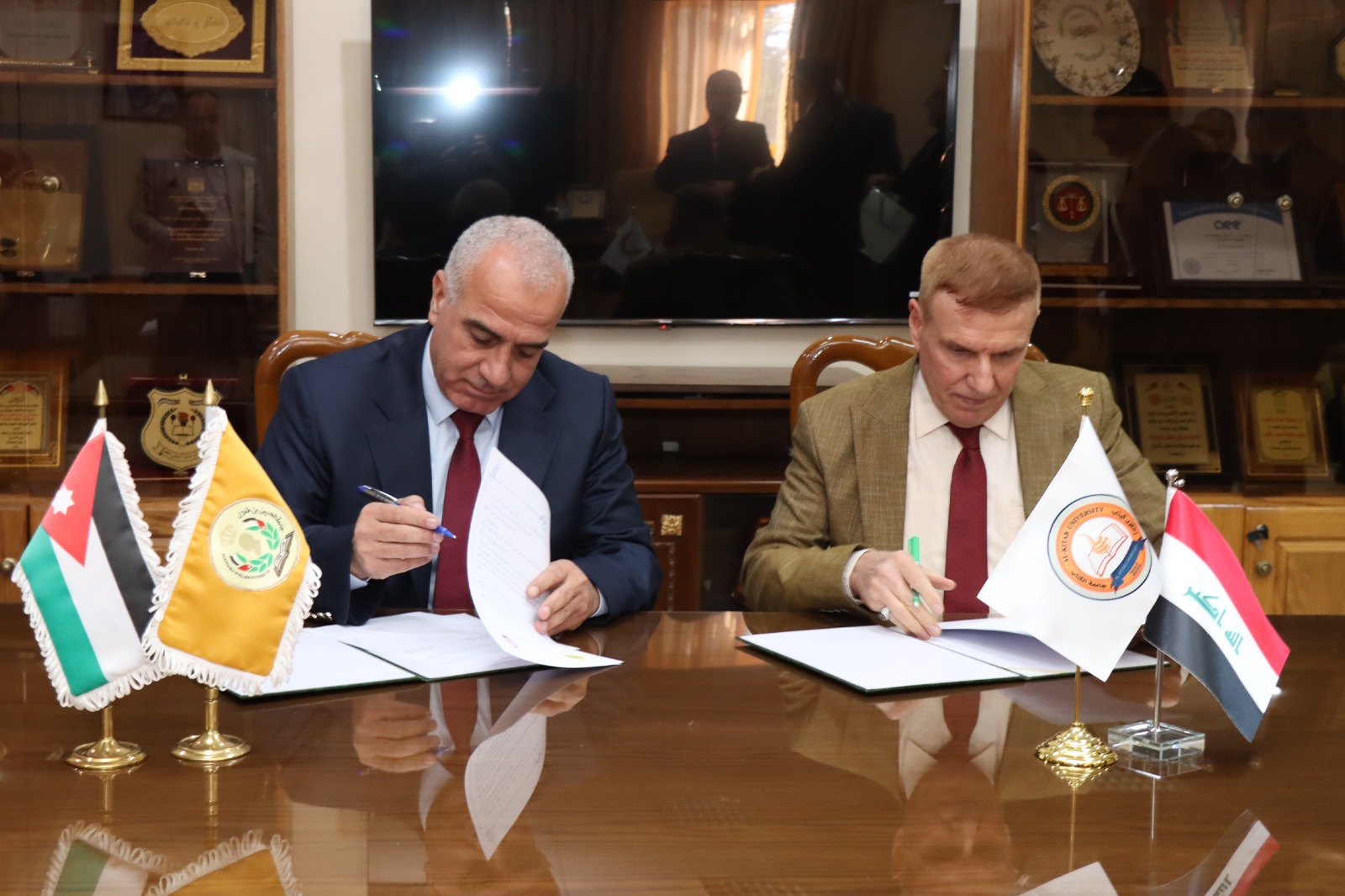 استقبل رئيس جامعة الحسين بن طلال الأستاذ الدكتور عاطف الخرابشة في مكتبه في معان اليوم وفداً ضم عدد من رؤساء الجامعات والمعاهد العراقية، وذلك بهدف توقيع مذكرات تفاهم وبحث لسبل التعاون العلمي، وبحضور نائب رئيس الجامعة للشؤون الإدارية الأستاذ الدكتور محمد الرصاعي، ونائب رئيس الجامعة للشؤون الأكاديمية الأستاذ الدكتور مروان بطيحة. حيث ضم الوفد الضيف كلاً من أصحاب السعادة رئيس جامعة الكتاب/ كركوك ا.د اياد برزنجي، ورئيس جامعة نولج/ أربيل ا.د أحمد أنور، وعميد كلية النخبة الجامعة/ بغداد ا.د جميل الزيدي، وعميد كلية القلم/ كركوك ا.د لطيف برزنجي، ا.د سامي علي من كلية النخبة الجامعة.في بداية اللقاء رحّب رئيس جامعة الحسين بن طلال الأستاذ الدكتور عاطف الخرابشة بالوفد الضيف في رحاب الجامعة، حيث قال الدكتور الخرابشة أنه لمن دواعي سرورنا أن نلتقي هذا اليوم بقامات علمية كبيرة من أشقائنا من الجمهورية العراقية، حيث سيكون هذا اللقاء بداية لتعاون كبير ومثمر ما بين جامعة الحسين بن طلال والجامعات العراقية المختلفة، لما فيه تطوير العملية التعليمية ما بين الطرفين. كما قال الدكتور الخرابشة أن جامعة الحسين بن طلال وهي أولى مكارم جلالة الملك عبدالله الثاني ابن الحسين في أولى أيام توليه مقاليد الحكم، تفتح ذراعيها لأي مبادرة تعاونية علمية تثمر عنها أجيال متطلعة للعلم والمعرفة، وأن توقيع مذكرة التفاهم اليوم تهدف إلى توطيد العلاقات الأكاديمية والتأسيس لأرضية مناسبة للتعاون بين الجامعات الأردنية والعراقية إيمانًا بضرورة تبادل الخبرات لما لها من أثر كبير في إثراء وتطوير الأداء المؤسسي والأكاديمي والبحثي في مجتمع المعرفة المتجدد.كما أكد الدكتور الخرابشة على ضرورة تشجيع التبادل الثقافي والطلابي، وإقامة المشاريع والبرامج العلمية والبحثية المشتركة مع مختلف الجامعات العربية والدولية تحقيقا لأهداف الجامعة الرامية الى الانفتاح، والتعاون للوصول الى المستويات الدولية التي تسعى جامعة الحسين بن طلال لتحقيقها.وفي لقاء عبر إذاعة صوت الجنوب والتي تبث برامجها من جامعة الحسين بن طلال شكر عميد كلية القلم الجامعة - العراق الأستاذ الدكتور لطيف سعيد برزنجي رئيس جامعة الحسين بن طلال وأعضاء الهيئتين التدريسية والإدارية على حسن الاستقبال، وأضاف البرزنجي أن هدف الزيارة إبرام مذكرات تفاهم وتعاون علمي بين المؤسسات العلمية في العراق وجامعة الحسين بن طلال لإقامة مؤتمرات علمية وبحوث علمية مشتركة. مبيناً أن هذه المذكرات ستكون فاتحة لعمل دؤوب ومستمر بين الجامعات بما يواكب التطور التكنولوجي والعلمي في العالم، وتبادل للخبرات وتبادل لأعضاء هيئة التدريس والطلبة.وشملت الزيارة جولة قام بها الوفد الضيف إلى كلية العلوم في الجامعة حيث تم الاطلاع على متحف الحياة البرية ومختبرات الكلية المتطورة، وزيارة لكلية الهندسة والاطلاع على المشاغل الهندسية فيها والمختبرات المتطورة هناك، وزيارة مختبر المحاكاة في كلية الأميرة عائشة بنت الحسين للتمريض والعلوم الصحية والذي يحتوي على أحدث ما توصل اليه العلم في المحاكاة الطبية للحالات التي من الممكن أن تواجه طلبة الكلية خلال عملهم ما بعد التخرج وتأهيلهم لسوق العمل بكل اقتدار. وتم في نهاية الزيارة والتي حضرها مدير دائرة العلاقات الدولية في جامعة الحسين بن طلال الدكتور احمد صلاح، ومدير وحدة العلاقات العامة والاتصال المجتمعي الدكتور محمد جرار تبادل للدروع التذكارية ما بين الطرفين.