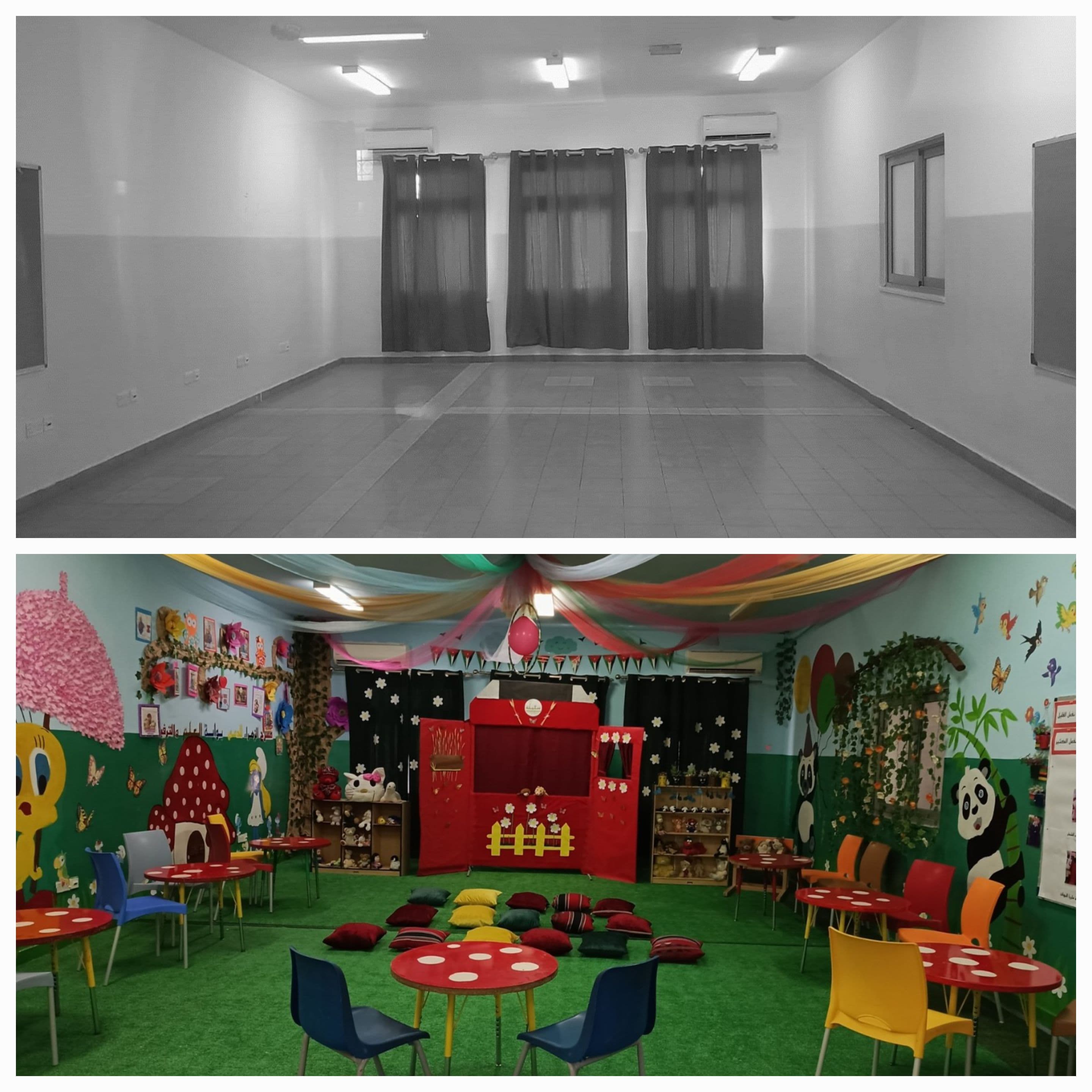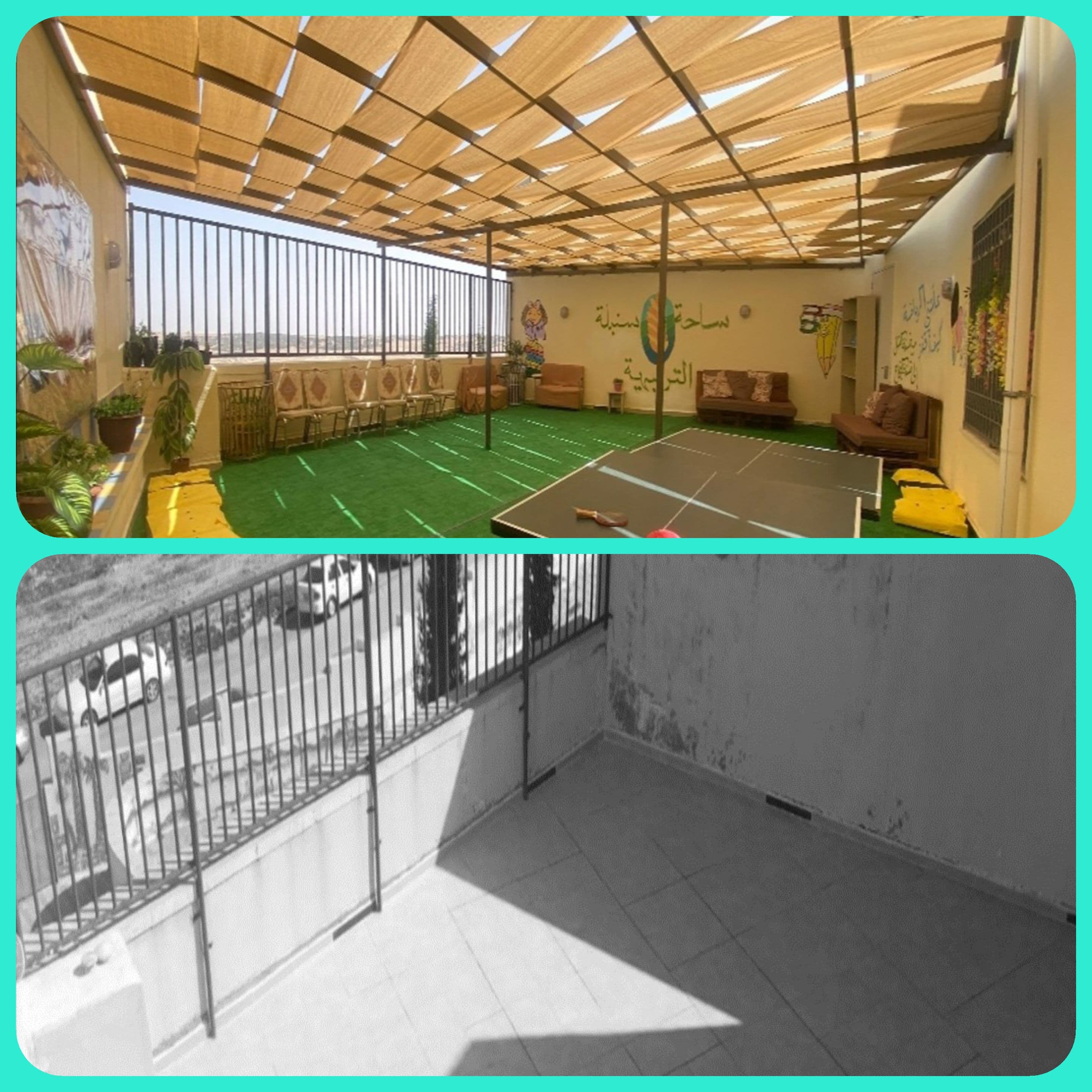 بتوفير بيئة مدرسية آمنه وصحية ونظيفة من خلال استغلال مساحة 100م في الطابق الثالث بتركيب مظلة علوية وفرش الأرضيات وتقسيمها إلى أركان خاصة للقراءة والرياضة والترفيه حتى أصبحت هذه الساحة الآن جزءا لا يتجزأ من أركان المدرسة وخففت العبء عن ساحة المدرسة الرئيسية وبعض المرافق الاخرى وايضا مكانا لتنفيذ العديد من الأنشطة المهمة والترفيهية ،