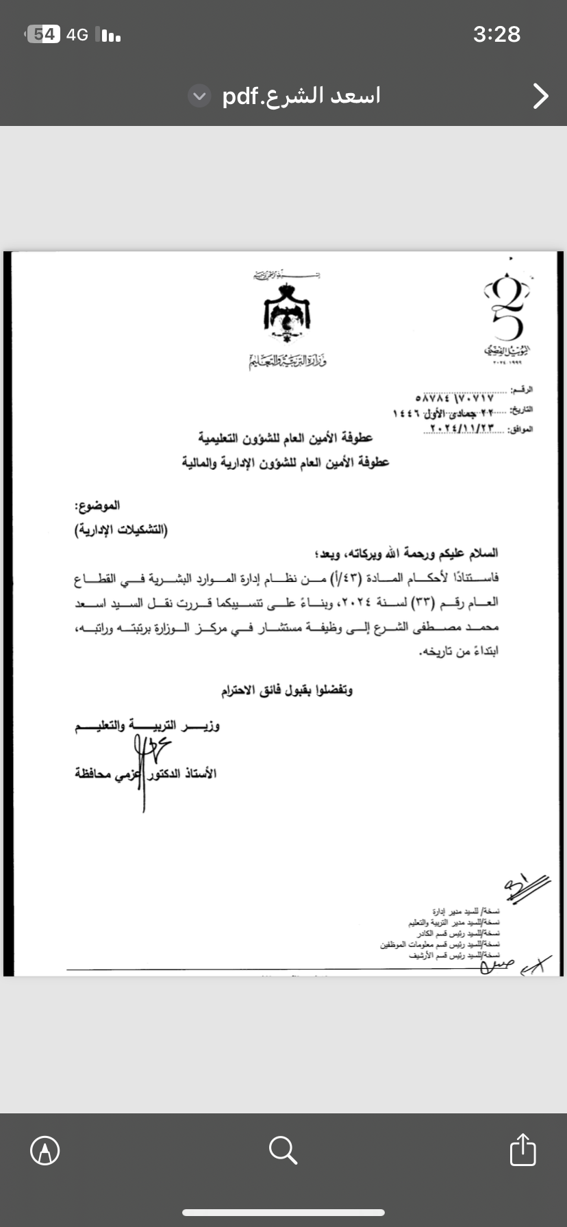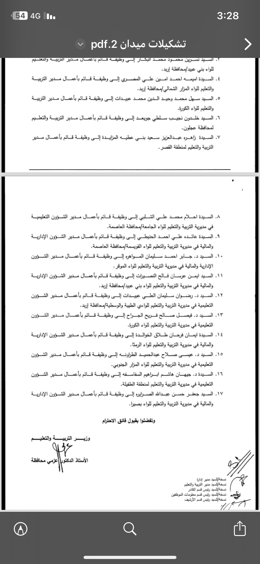 عاجل - تشكيلات إدارية موسعة في وزارة التربية والتعليم (أسماء)