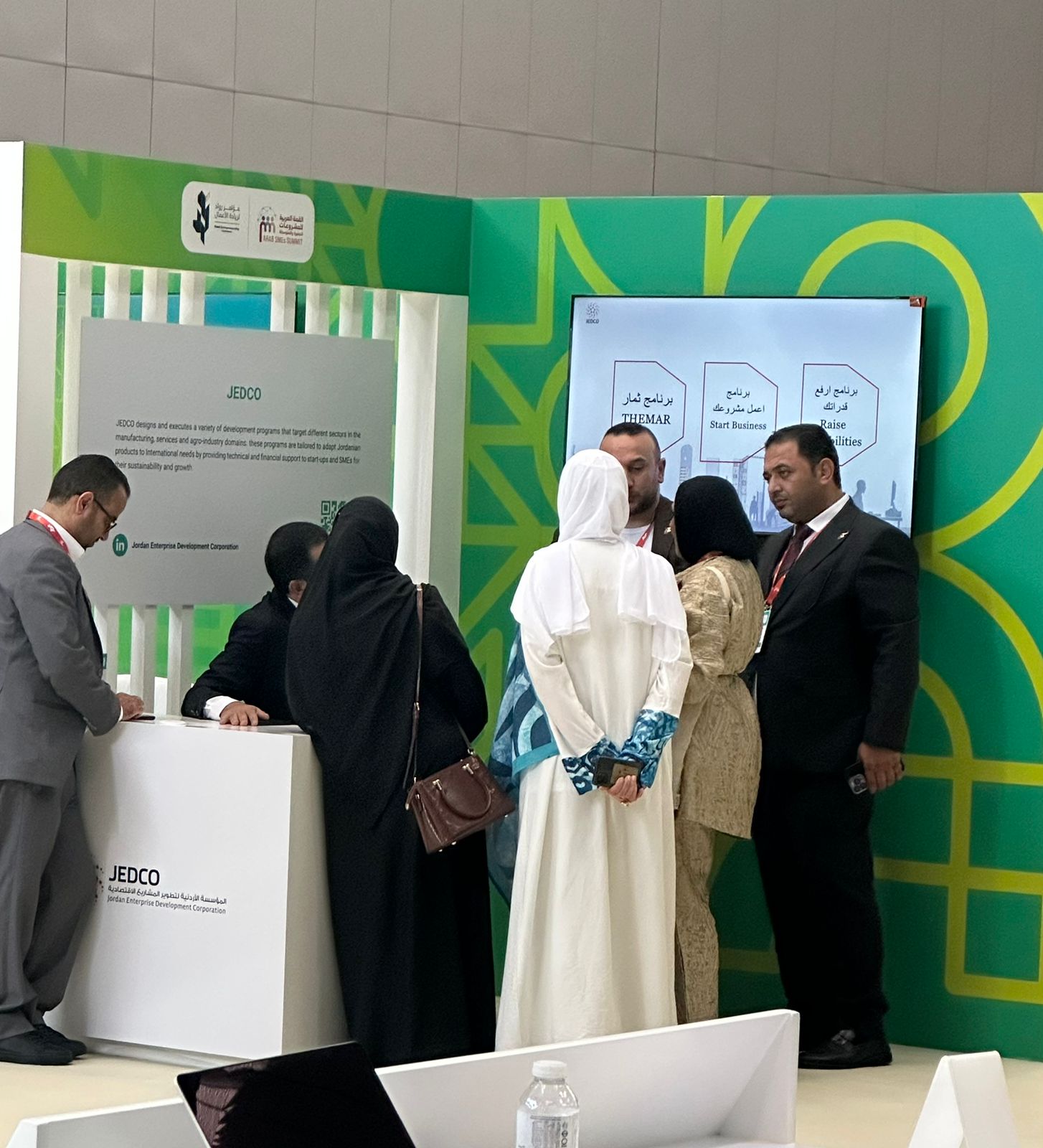 شاركت المؤسسة الأردنية لتطوير المشاريع الاقتصادية إضافة إلى عدد من رواد الأعمال الأردنيين في أعمال القمة العربية الثالثة لريادة الأعمال والشركات الصغيرة والمتوسطة التي أقيمت الأسبوع الماضي في الدوحة بتنظيم من لجنة الأمم المتحدة الاقتصادية والاجتماعية لغرب آسيا (الاسكوا) وبنك قطر للتنمية.وقد شملت المشاركة على جناح ضمن أجنحة المؤسسات الشريكة قدمت من خلاله المؤسسة أبرز إنجازاتها في مجال دعم المشاريع الناشئة والصغيرة والمتوسطة في الأردن بالإضافة الى عرض أبرز البرامج التي تقدمها المؤسسة لتمكين هذه المشاريع من النمو والاستدامة خاصة في ظل الظروف التي تعاني منها هذه الشركات خاصة في مجال التمويل والتوسع وإيجاد شراكات عربية وإقليمية ودولية.هذا كما شارك المدير التنفيذي للمؤسسة الأردنية لتطوير المشاريع الاقتصادية عبدالفتاح الكايد في الحوار الإقليمي الذي عقد على هامش القمة حول التحديات التي تواجه هذا القطاع مؤكدا أن الأردن قد وضع ضمن رؤية التحديث الاقتصادي أولوية لتنمية المشاريع الصغيرة والمتوسطة والتشغيل الذاتي مؤكدا أن القطاع يحظى بدعم الحكومة الأردنية لإيجاد أفضل الوسائل الممكنة لزيادة مساهمة هذا القطاع في الناتج القومي الإجمالي. وقد قام الكايد ووفد المؤسسة بإجراء لقاءات ثنائية مع عدد من الهيئات والوفود المشاركة بهدف بناء وتعزيز علاقات التعاون المستقبلي مع المؤسسة، كما قام السفير الأردني في الدوحة زيد اللوزي بزيارة الى جناح المؤسسة واطلع على ابرز إنجازاتها إضافة الى قيامه بجولة للاطلاع على ابتكارات المشاريع الريادية الأردنية المشاركة.هذا وكانت المؤسسة قد استضافت قبل عامين القمة العربية الاولى للريادة والمشاريع الصغيرة والمتوسطة بحضور ما يقارب 700 مشارك من الهيئات والمؤسسات العربية ورواد أعمال من مختلف الدول العربية.