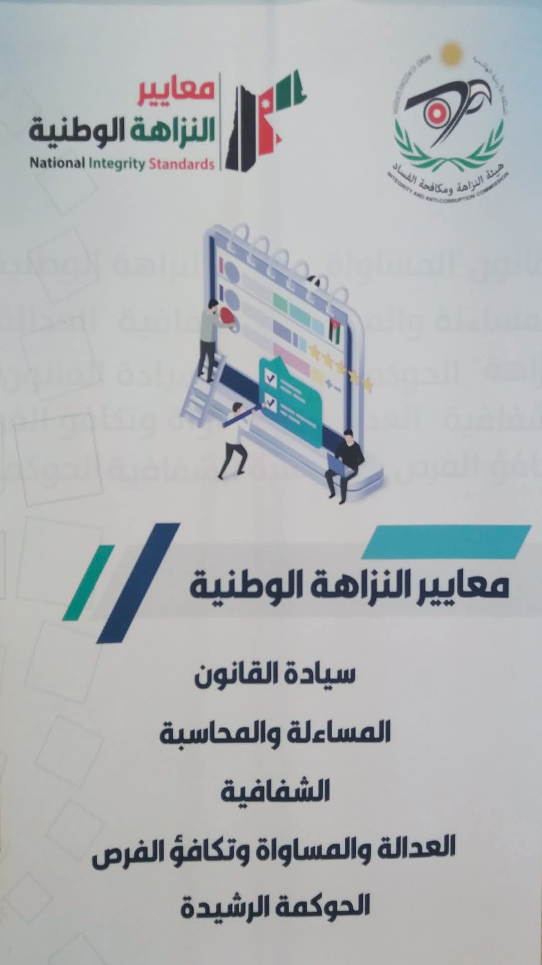 عُقد اليوم في مديرية ثقافة الكرك / مركز الحسن الثقافي وبالتعاون مع (هيئة النزاهة ومكافحة الفساد) ورشة تثقيفية بعنوان (معايير النزاهة الوطنية ودور الهيئة في مكافحة الفساد) .وجاءت الورشة والتي شارك فيها كافة موظفي المديرية للتأكيد على سيادة القانون في مكافحة الفساد وبناء مجتمع نزيه وشفاف، وأوضحت المدربة بيان الطورة مهام وصلاحيات الهيئة وآلية عملها، ومعايير النزاهة الوطنية والآثار السلبية التي تترتب على أعمال الفساد .وهدفت الورشة إلى تدريب الموظفين واطلاعهم على دور وأهمية ما تقدمه الهيئة في مكافحة الفساد وتعزيز النزاهة وتأكيد سيادة القانون والمساءلة والمحاسبة الشفافة والذي يعتبر الأساس لبناء دولة المؤسسات والقانون والضامن الوحيد للمساواة والعدالة وتكافؤ الفرص بين جميع أفراد المجتمع .