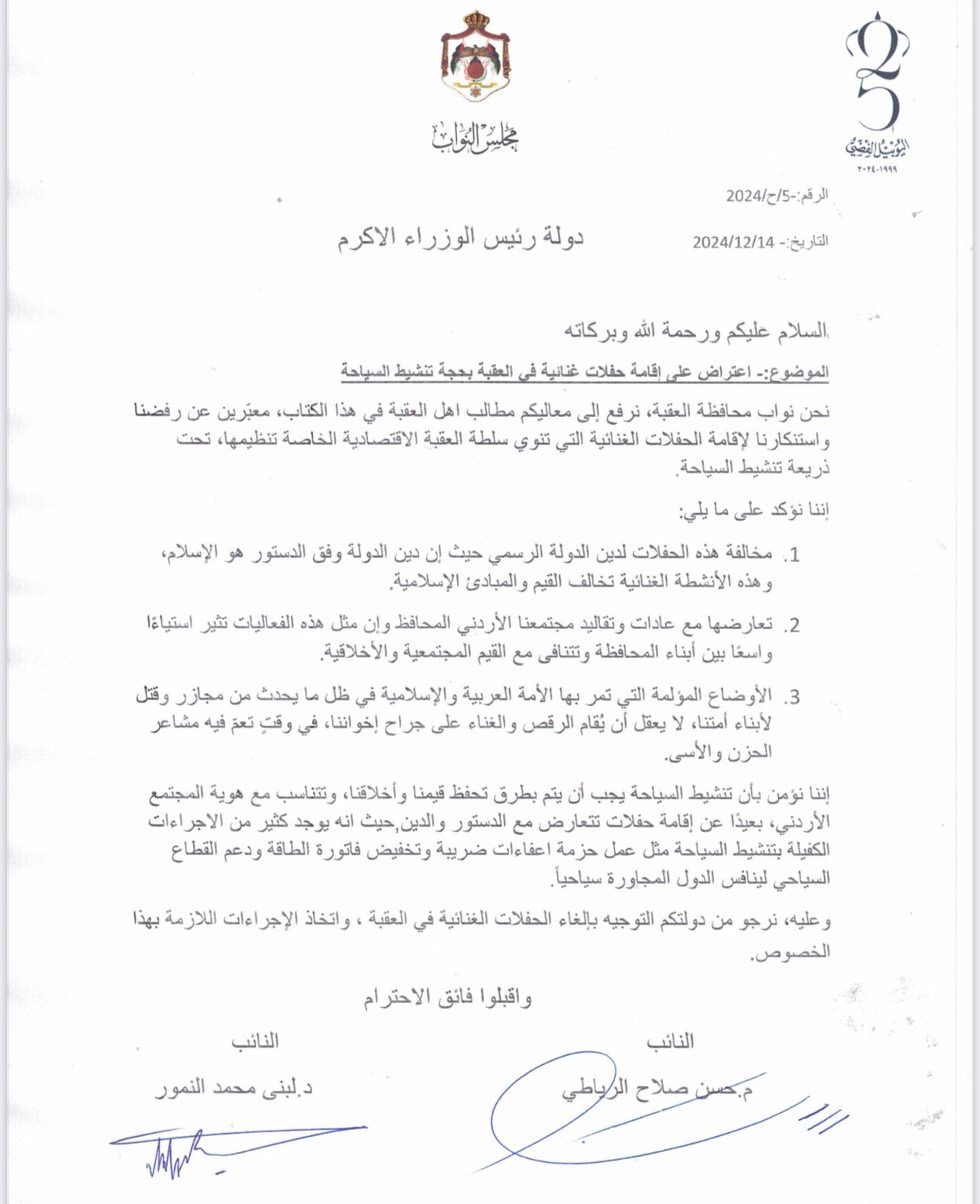 جدل في العقبة: نائبان يرفضان الحفلات الغنائية.. هل تتعارض مع الدين والأخلاق؟