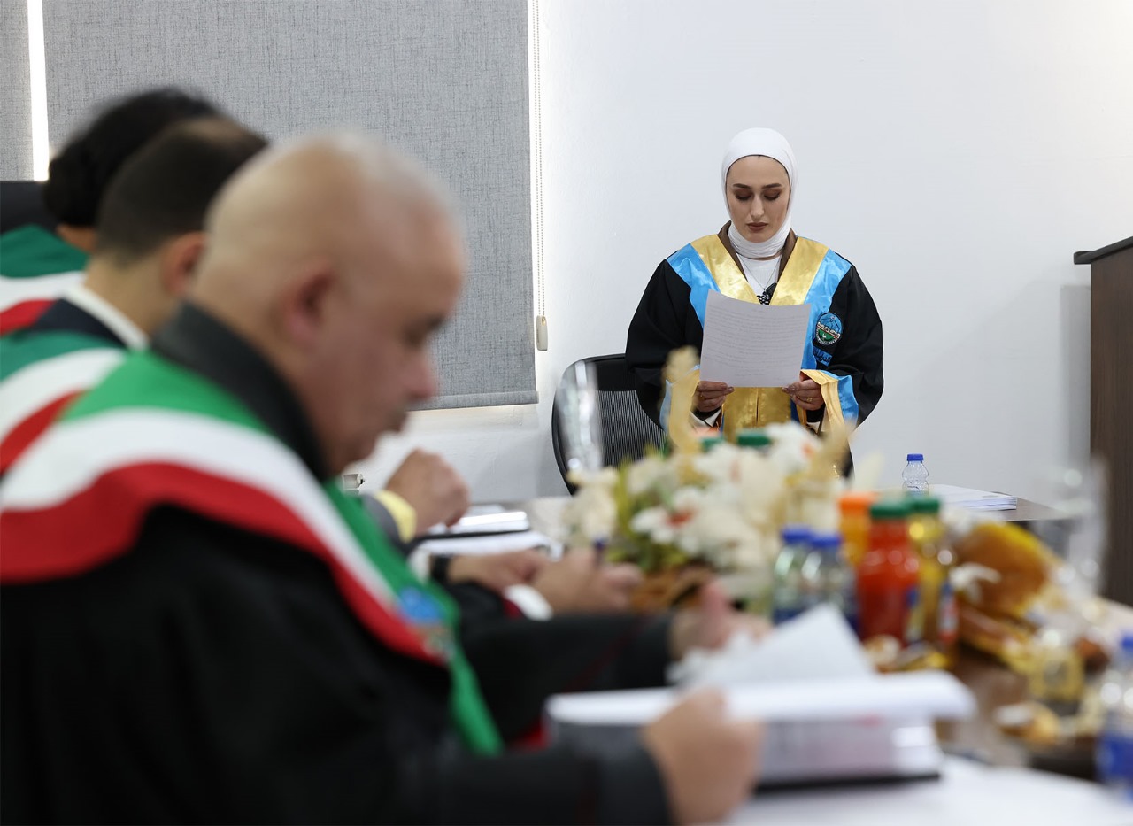 •الدكتور تحسين شرادقة، مناقشًا داخليًا. • الأستاذ الدكتور هاني أخو رشيدة، نائب رئيس جامعة آل البيت، مناقشًا خارجيًا.وأشادت اللجنة بموضوع الرسالة المستحدث وأكدت أنه يستحق النشر والاستفادة منه كمرجع علمي في الأبحاث الأكاديمية. كما أبدت إعجابها بالمستوى العلمي والتحليل الدقيق الذي قدمته الطالبة، ووصفت الرسالة بأنها واحدة من الدراسات التي تسهم في تعزيز فهم العلاقة بين المنصات الرقمية والمشاركة السياسية.خاصة في ظل التحولات الاجتماعيةوالسياسية المتسارعة.وحضر المناقشة عدد من أساتذة الجامعة وشخصيات أكاديمية بارزة، بالإضافة إلى أفراد عائلة الطالبة، الذين عبّروا عن فخرهم بهذا الإنجاز الكبير.