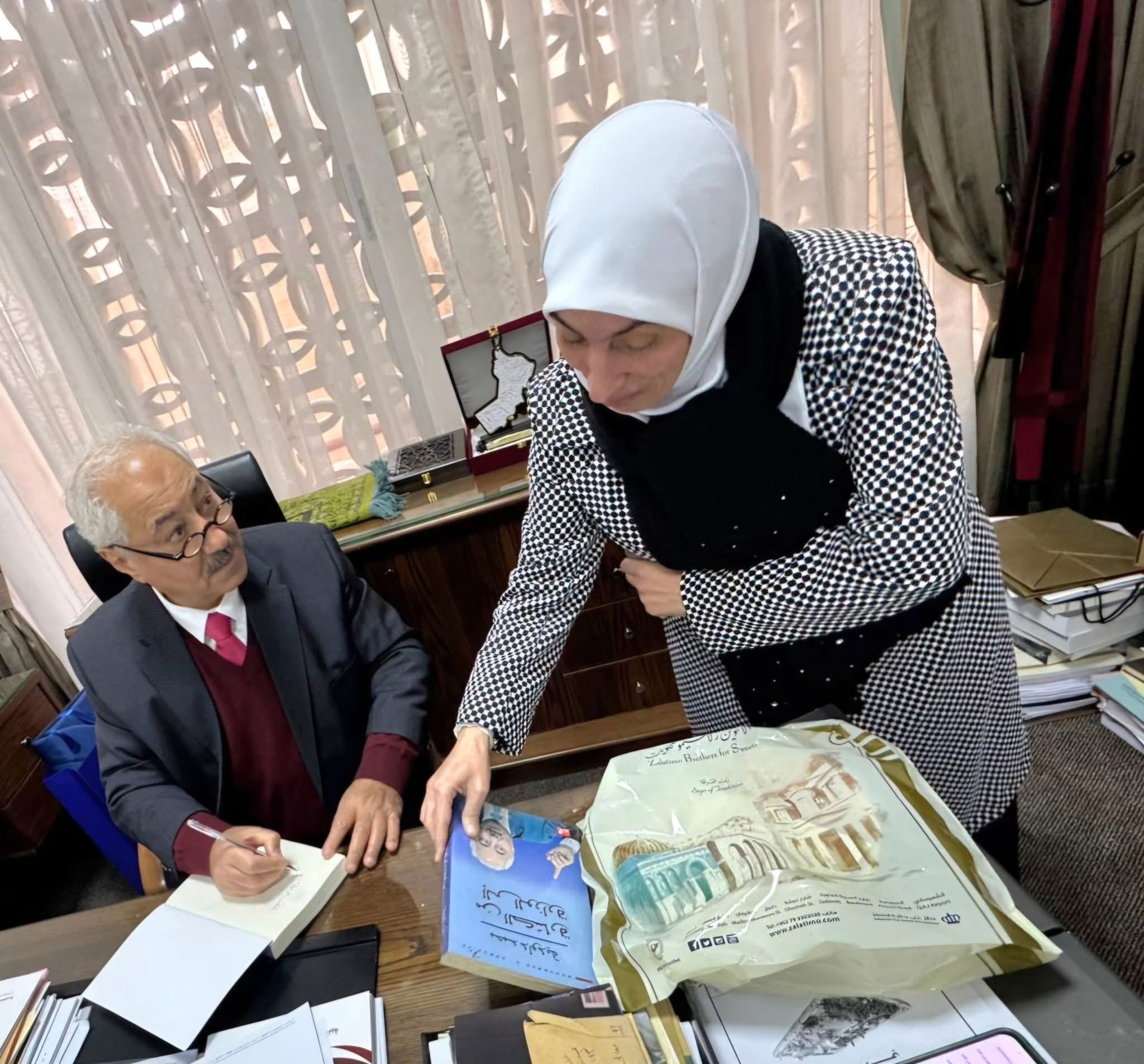 وقد أهدت النائبات للعين الداودية سجادة صلاة، تعبيراً عن تقديرهن لدوره البارز في الحياة العامة. وفي المقابل، قام العين الداودية بتقديم نسخة من كتابه "من الكسارة إلى الوزارة" لكل من النواب الفاضلات.