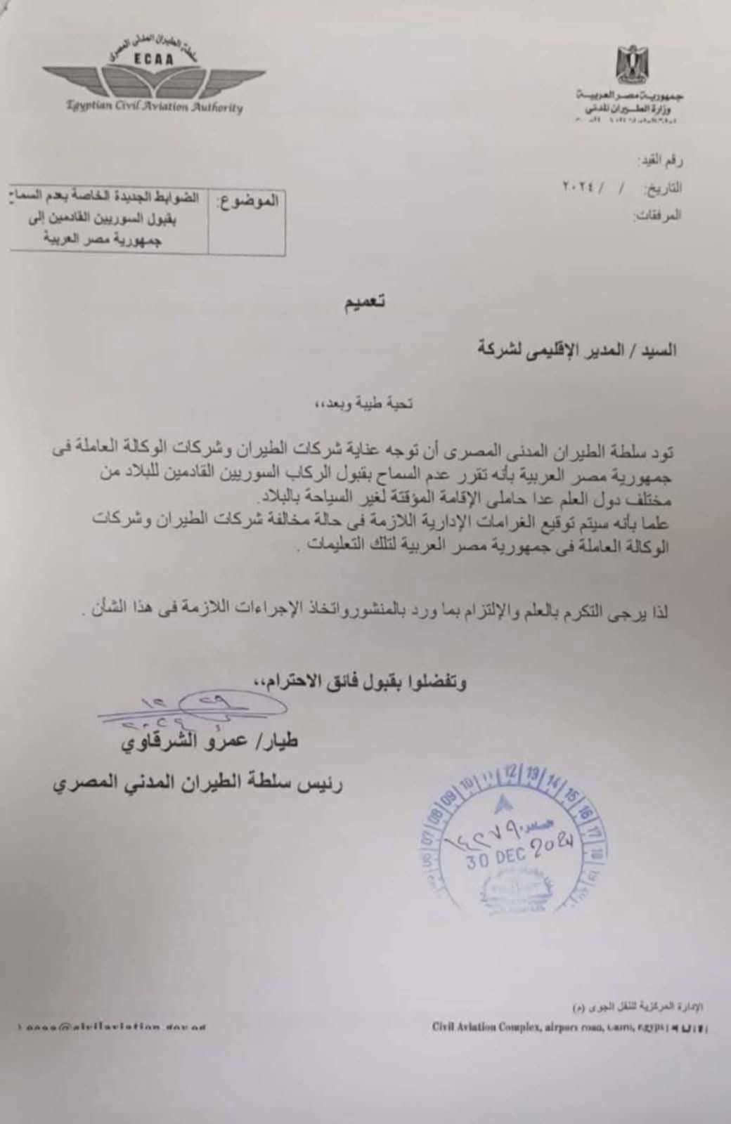 (وثيقة ) بعد تقارير تحدثت عن تجنيس إرهابيين … مصر تعزز إجراءاتها الأمنية: وتمنع دخول السوريين إلى أراضيها من جميع دول العالم