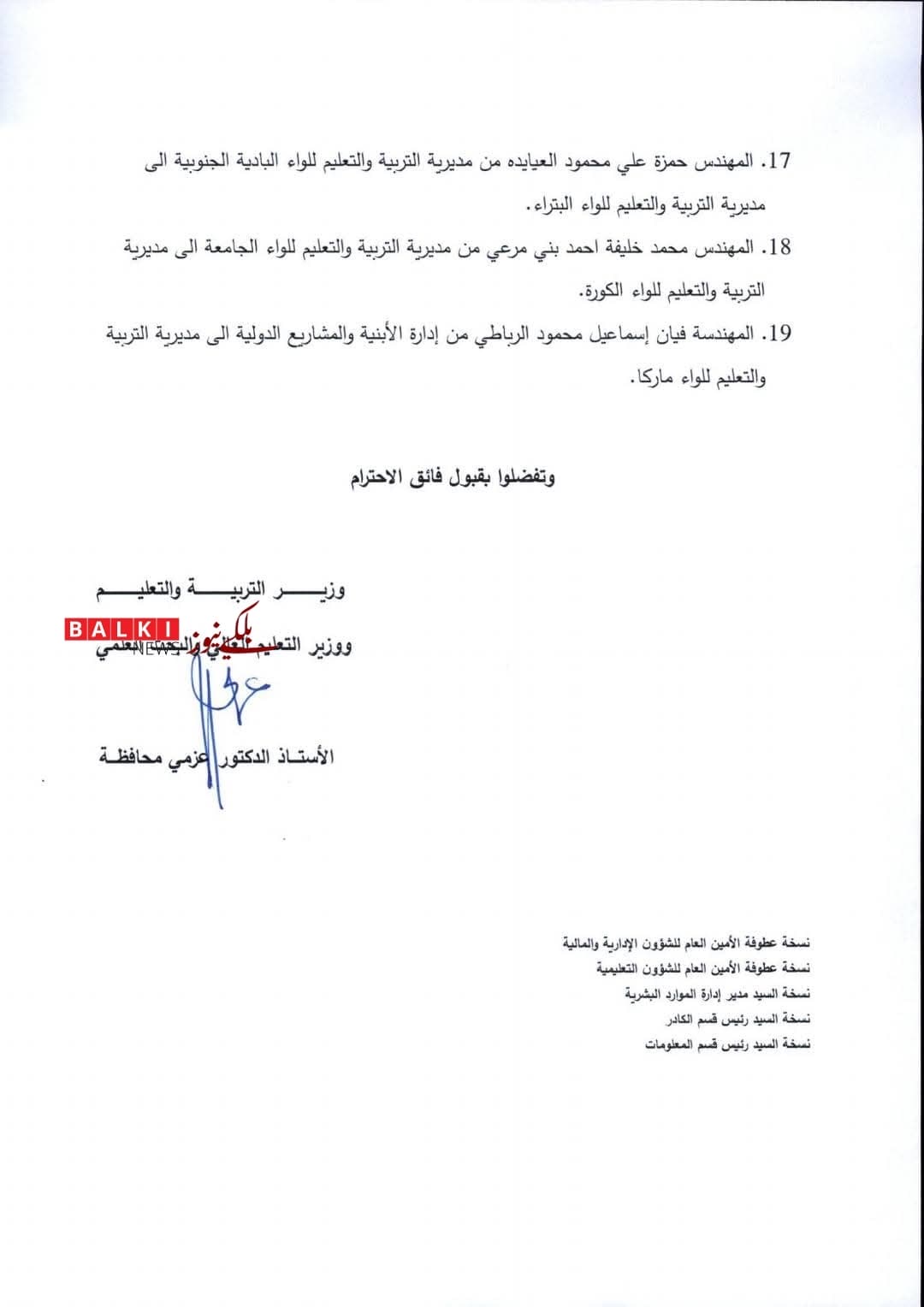 وزارة التربية تعلن عن شواغر وتنقلات داخلية ( وثيقة )