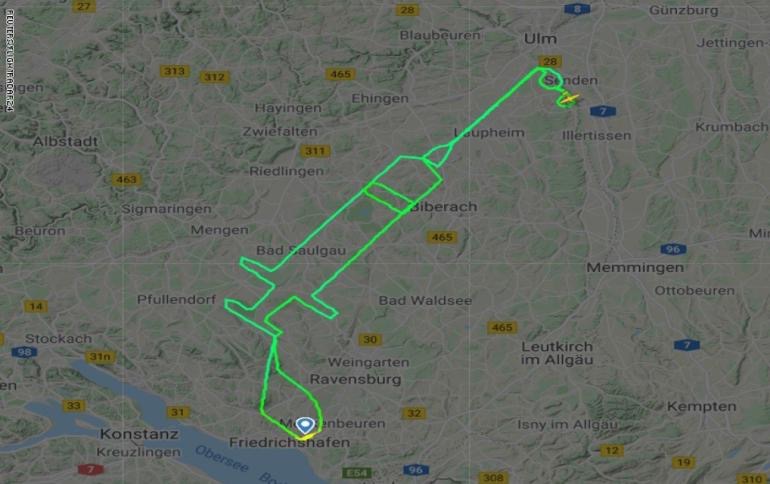 سياسات : طيار ألماني يرسم مساراً جوياً على شكل حقنة في السماء بمناسبة إطلاق حملة لقاح كورونا