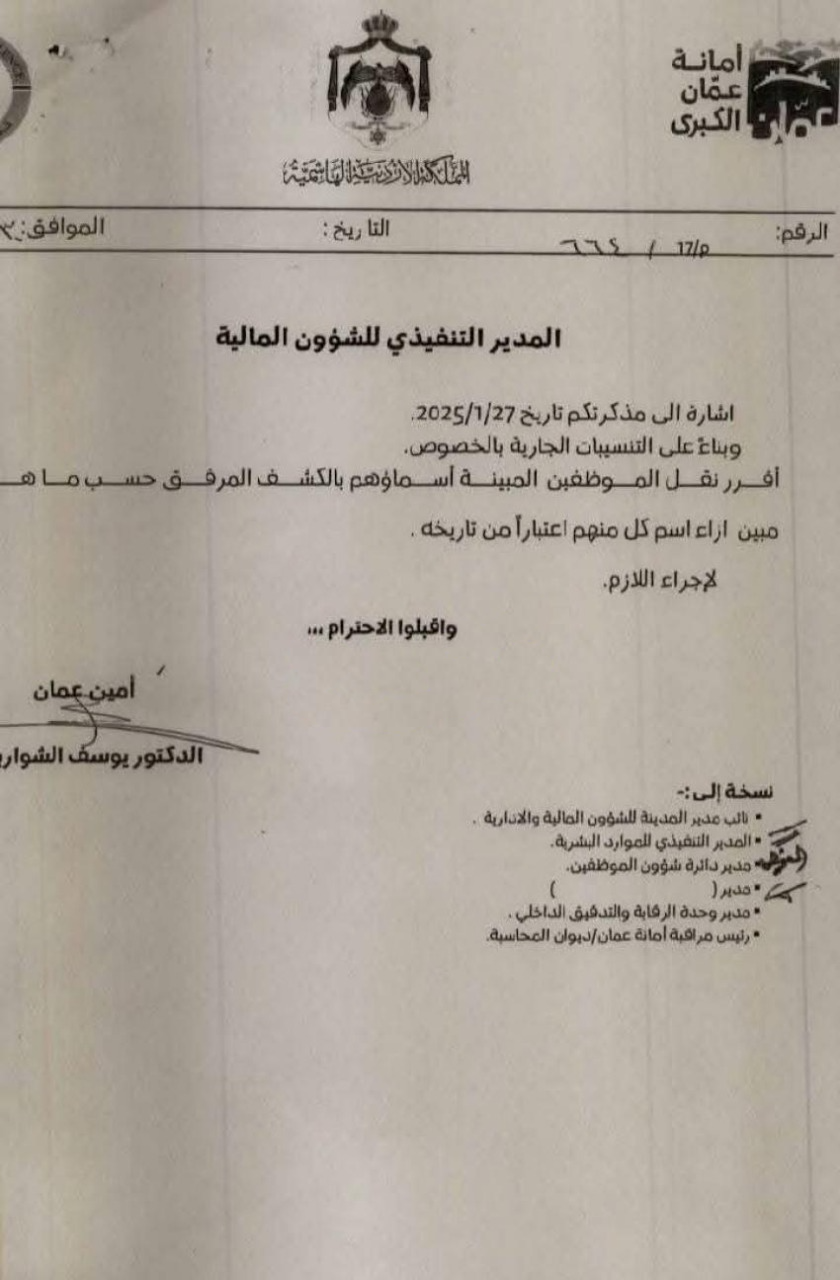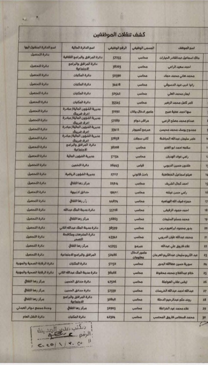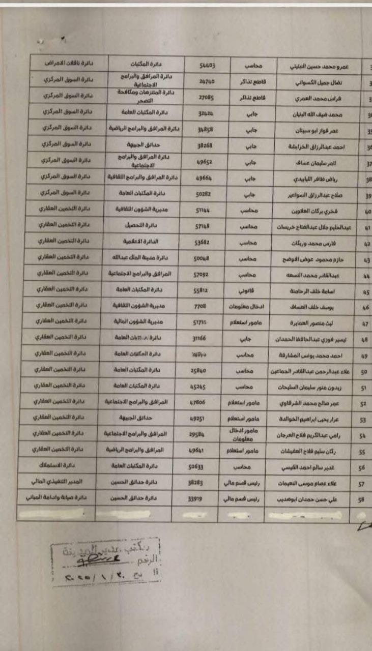 بالأسماء ... تنقلات في مختلف دوائر أمانة عمان الكبرى