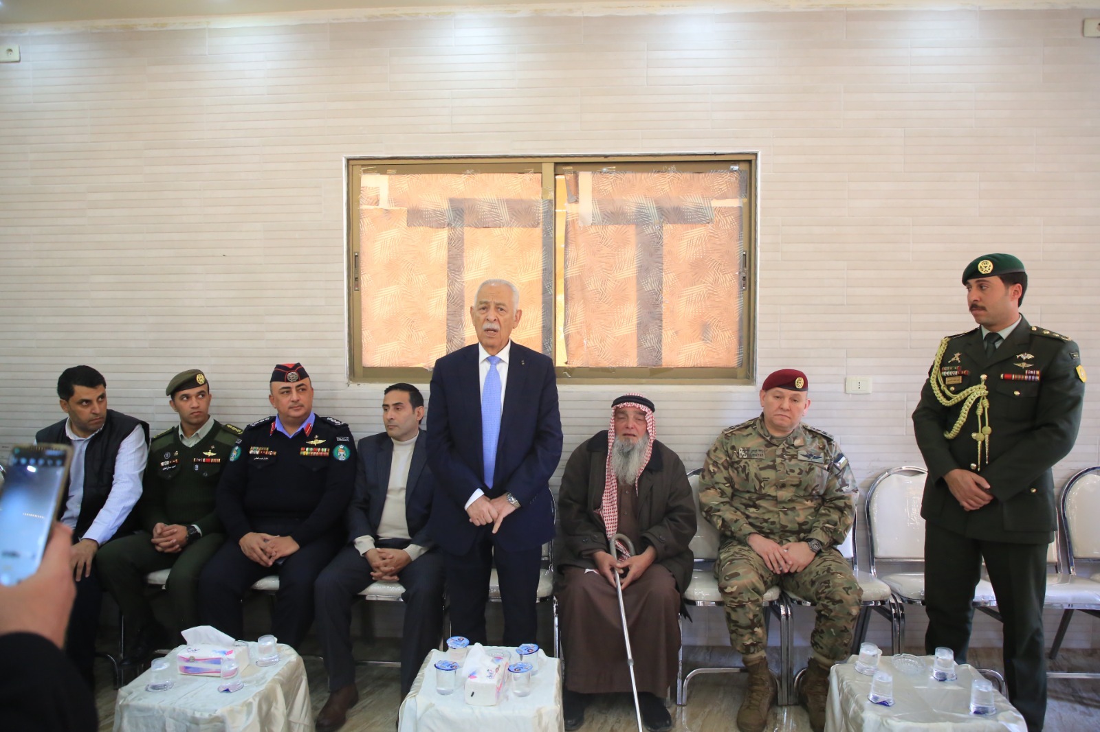 عمان- 1 شباط 2025- بتوجيهات من جلالة الملك عبدالله الثاني، القائد الأعلى للقوات المسلحة، قدم رئيس الديوان الملكي الهاشمي يوسف حسن العيسوي واجب العزاء لذوي ضحايا مرتبات القوات المسلحة الأردنية – الجيش العربي، الذين قضوا إثر حادث مؤسف.