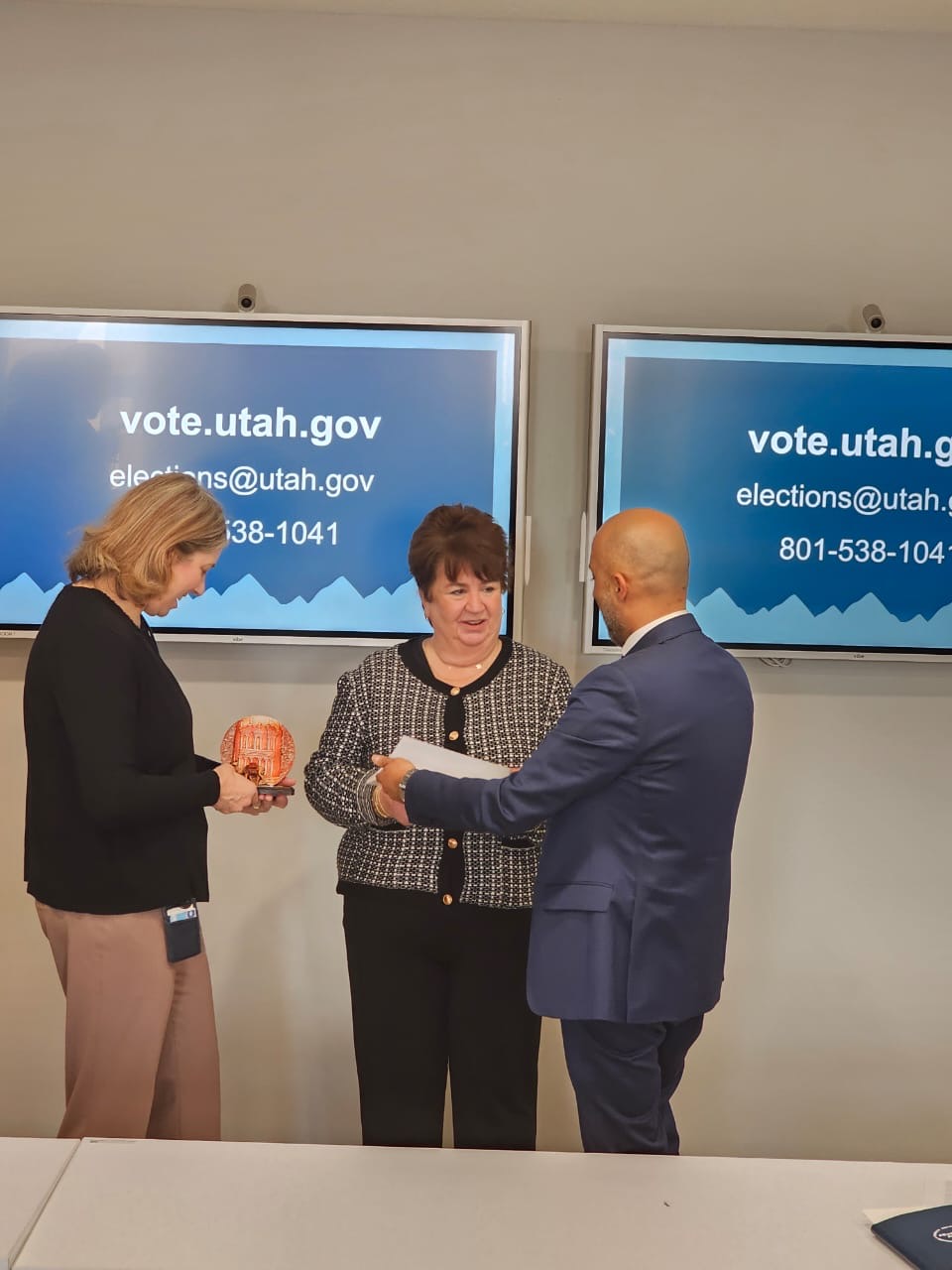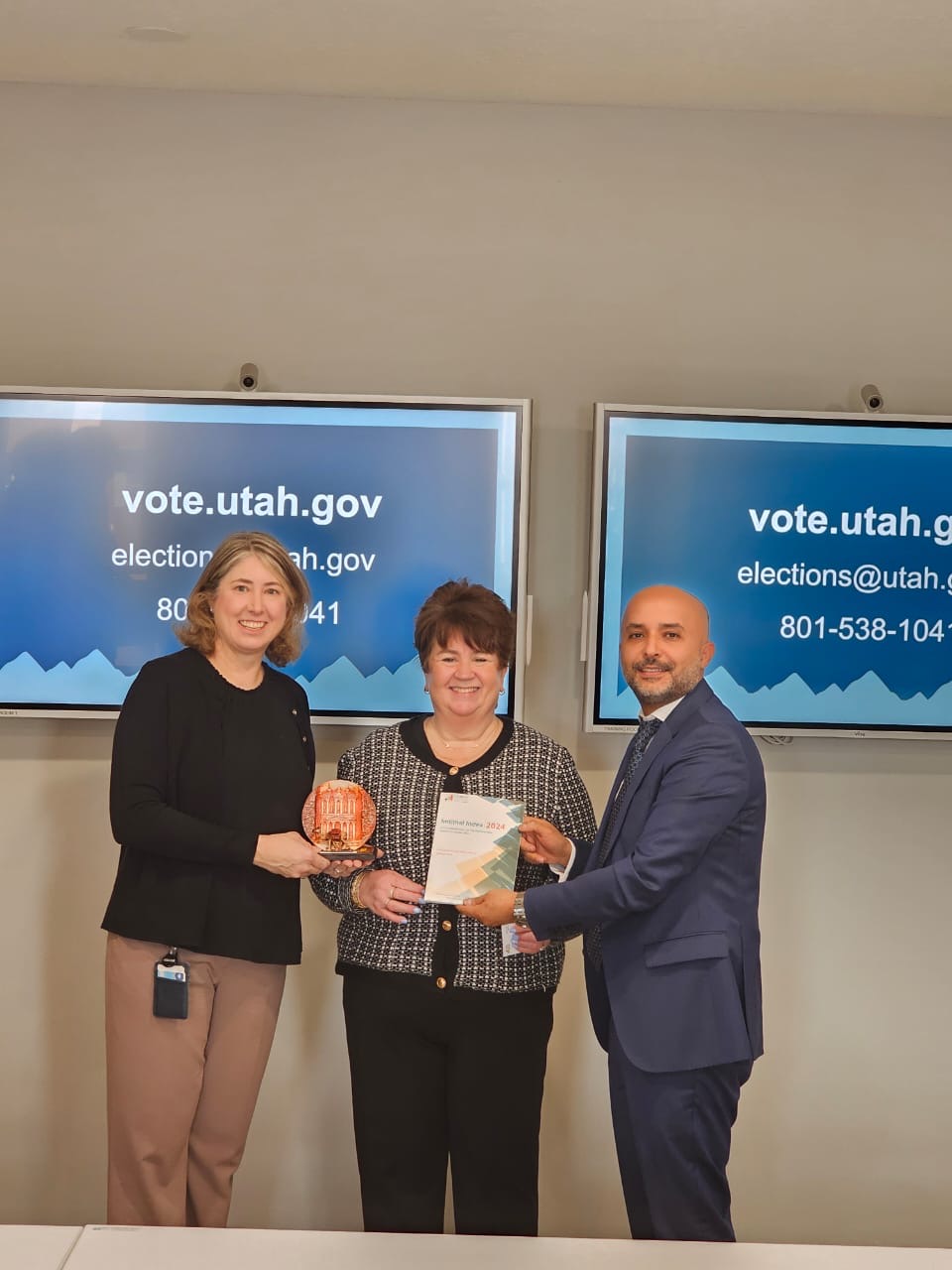 يوتا - امريكا - في زيارة لمكتب نائب حاكم ولاية يوتا للانتخاب، قدم الرئيس التنفيذي لمركز مؤشر الأداء | كفاءة المهندس معاذ المبيضين عرضا مفصلاً عن معايير مؤشر امتثال للرقابة على الانتخابات وأهمية المؤشر لامكانية تطبيقه للرقابه على سلامة ونزاهة الانتخابات في ولاية يوتا الامريكية، وعلى جانب الزيارة، بحث المركز مع العديد من منظمات المجتمع المدني فرص تبادل الخبرات في مجال الرقابة وإنشاء تحالف عالمي للرقابة على الانتخابات وفق معايير مؤشر امتثال.