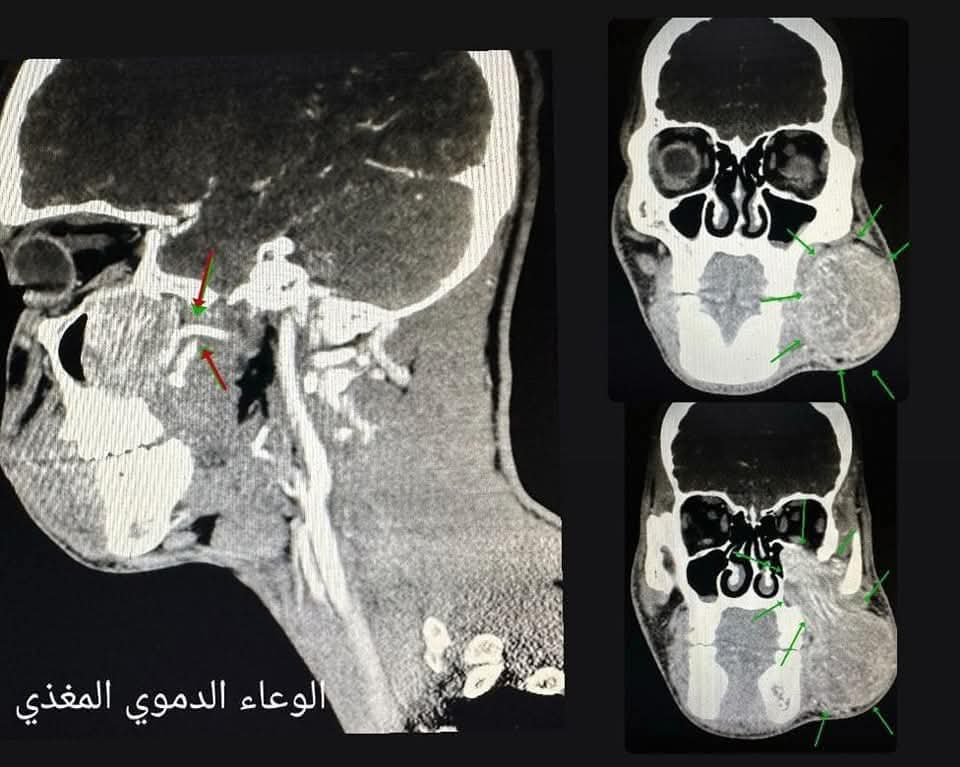 راجع مستشفى الحسين السلط الجديد أحد المواطنين لعيادة جراحة الوجه و الفكين وكان يشكو من انتفاخ متزايد في منطقة الخد وبعد اجراء الفحوصات الشعاعية و النسيجية ، تم تشخيص المريض بورم دموي حميد نادر، يسمى(juvenile nasopharyngeal angiofibroma)عادة ما ينبع في البلعوم الانفي ، الا انه في هذه الحالة نابع من منطقة الحفرة تحت الصدغية في قاع الجمجمة (infratemporal fossa)، ممتد الى الخارج بجانب الفك السفلي الى منطقة الخد. و بناءً على صور الاشعه، تم بفضل الله و كرمه عمل اجراء جراحي نوعي و معقد استمر لمدة ٨ ساعات و نصف، تم خلاله استئصال كامل للورم مع المحافظة الكاملة على الشرايين و الاعصاب الخامس و السابع ، و اغلاق الشريان المغذي للورم، دون حدوث أية مضاعفات تذكر، حيث تماثل المريض للشفاء و غادر غرفة العناية المشددة بصحة ممتازة. و تعتبر هذه العملية من العمليات المعقدة جدا و الخطيرة بسبب موقع الورم في قاع الجمجمة و ما يحيط به من اعصاب و شرايين و امتداده ال منطقة الخد جعله اكثر تعقيدا من ناحية جراحية. هذا ويحرص مستشفى الحسين السلط الجديد على توفير بيئة مناسبه و داعمة لعلاج الحالات الصحية المتقدمة و تلقي اعلى مستوى من الرعاية الصحية للمواطنين في محافظة البلقاء خصوصا و المملكة عموما.