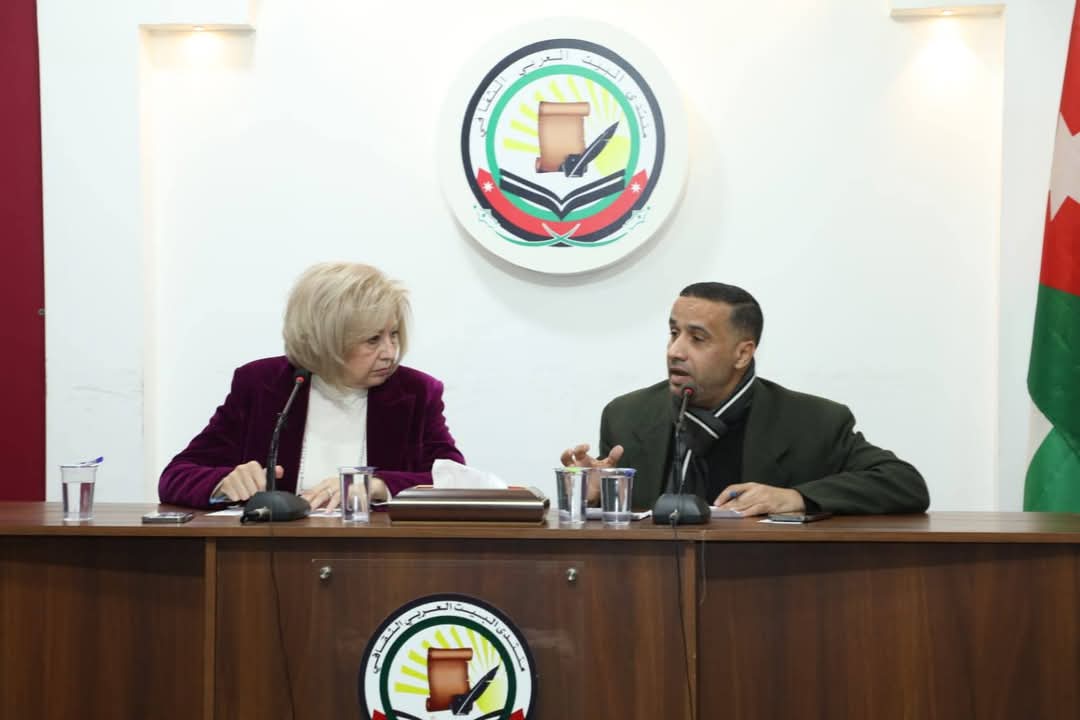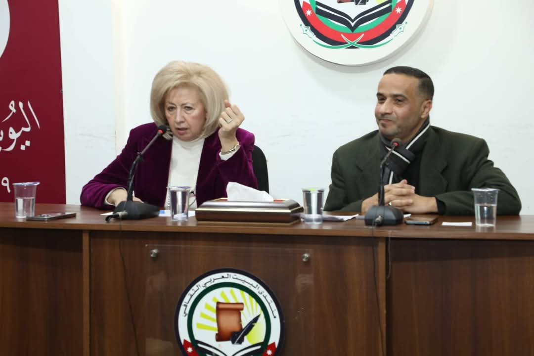 .ضمن صالونه الثقافي الدوري استضاف منتدى البيت العربي في أمسية تكريمية معالي السيدة هيفاء النجار وزيرة الثقافة السابقة وسعادة العين الحالي للحديث حول تجربتها الإبداعية وأبرز المحطات في مسيرتها الثرّة.وحضر اللقاء جمهور نوعي ملأ جنبات المكان وسط أجواء جميلة تعمها أمطار الخير.رحب مدير الصالون الشاعر شفيق العطاونة بالحضور ،وتم قراءة الفاتحة على أرواح الشهداء ،وعرف بالصالون الثقافي، وشكر منتدى البيت العربي الثقافي على فعالياته النوعية التي رفدت الساحة الأدبية بكل ما هو جميل عبر هيئتيه الإدارية والعامة وجناحيه المحلقين رئيس المنتدى المهندس صالح الجعافرة وأمين السر الأديبة ميرنا حتقوة .ورحب بالضيفة المبدعة شاكرا تلبية الدعوة للصالون الثقافي.وتم استعراض جزء من سيرتها الذاتية ومسيرتها الإبداعية ومن ثم ابتدأ النقاش في محاور عدة حول تنشئتها والعوامل المؤثرة في مسيرتها، وعلاقتها الإنسانية والإبداعية بأسرتها والعمل التربوي وتأثيره على بناء الشخصية والعمل الثقافي والسياسي عبر تسلمها وزارة الثقافة وعضويتها لمجلس الأعيان في أكثر من دورة.وعبرت معاليها عن امتنانها لهذه الدعوة الكريمة، وشكرها للحضور النخبوي، وتحدثت بأسلوب عفوي ماتع و بكل تواضع ومحبة حول تجربتها ومسيرتها الإبداعية. وتحقيقا لأهداف الصالون جرى حوار ماتع ومداخلات بين الحضور الذوّاقة ومعاليها وشهادات إبداعية عبروا خلالها عن شكرهم للمنتدى وللضيفة الكريمة على ثقافتها وعملها الدؤوب لرفعة هذا الوطن ومسيرتها في خدمة الثقافة والمثقفين . وعبّر رئيس المنتدى المهندس صالح الجعافرة وأمين سر المنتدى - مديرة الأنشطة الأديبة ميرنا حتقوة عن شكرهما لمعاليها على قبول الدعوة وللحضور الكريم والجهود المبذولة من قبل الجميع ليبقى منتدى البيت العربي الثقافي منارة لكل الأدباء والمثقفين. هذا ويذكر أن فعاليات الصالون الثقافي الذي يديره الشاعر شفيق العطاونة تعقد أول أربعاء من كل شهر تستضيف نخبة من أولي الأدب والفكر والإبداع في مقر منتدى البيت العربي الثقافي في جبل الحسين في العاصمة عمان.وأخيرا تم تكريم معالي السيدة هيفاء النجار بدرع تذكاري من قبل رئيس المنتدى ومن ثم التقاط الصور التذكارية بين الجميع في جو مفعم بالسعادة والامتنان.