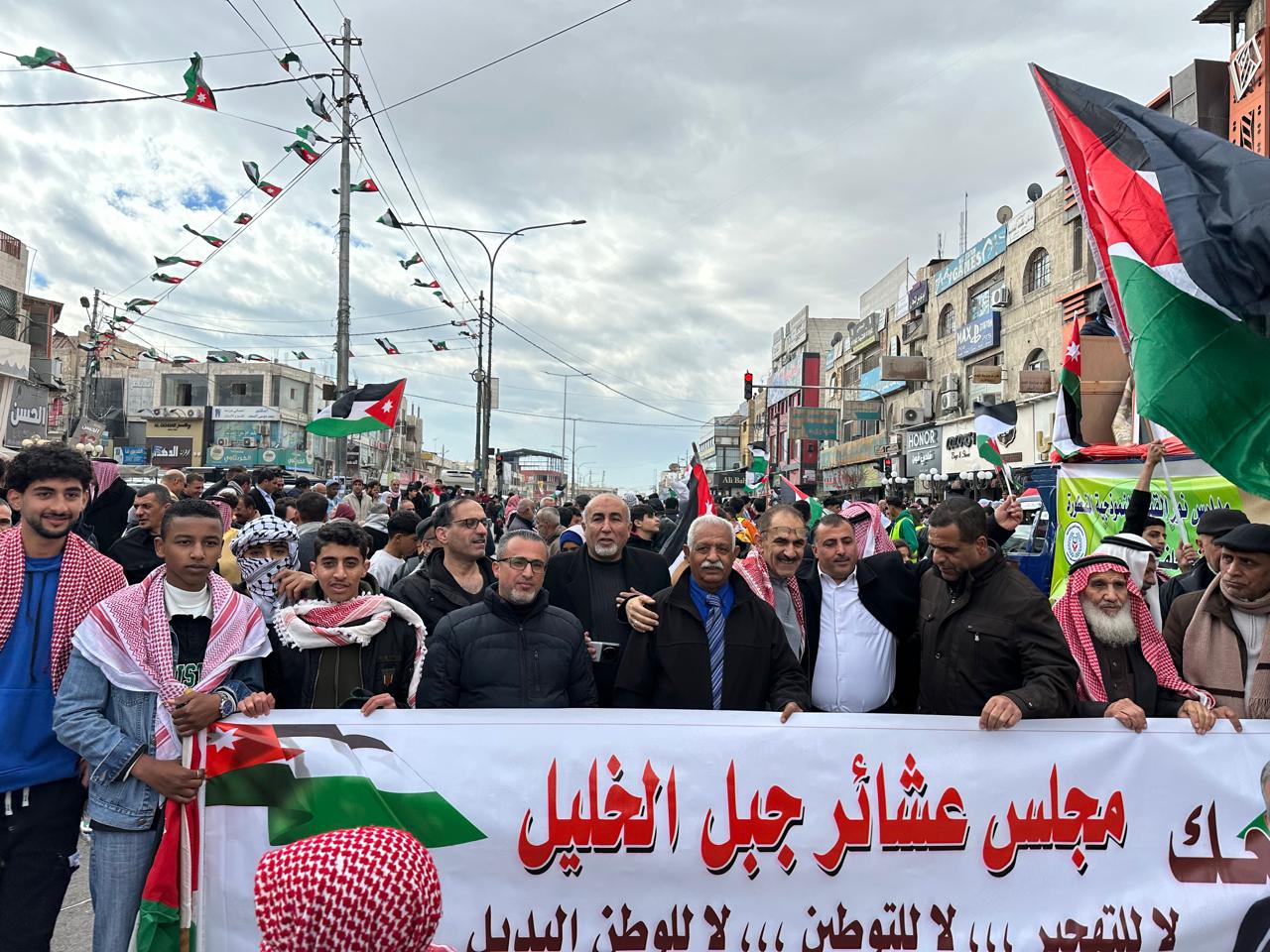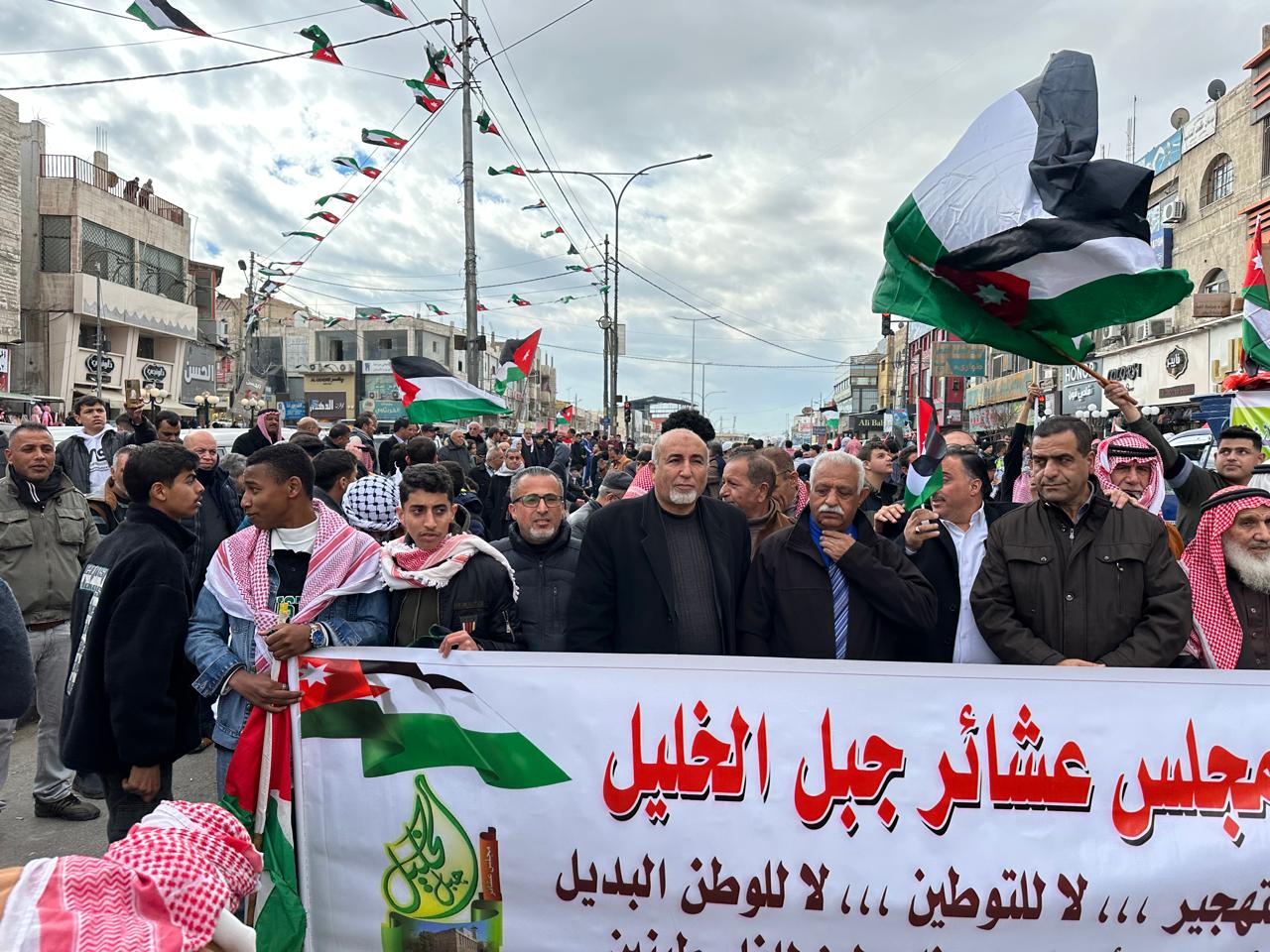 .اليوم الاثنين العاشر من شباط لعام الفين وخمسة وعشرين شارك أبناء مجلس عشائر جبل الخليل وقف الصمود و الدفاع عن الاردن و الدفاع عن فلسطين ، معلينين مخلصين تأييدهم و ولائهم لقيادتهم الأردنية الهاشمية التي تقود اليوم على الأرض محورا ديبلوماسيا مقاوما رافضا لمخططات الثكنة الصهيونية العسكرية الهادفة إلى تهجير أبناء الشعب الفلسطيني من الضفة الفلسطينية وقطاع غزة إلى الأردن و الشقيقة مصر ، في اعلان هو مثابة عدوان يهدد الاردن و جوديا و تصفية القضية الفلسطينية على حسابه و انتهاك صارخ لسيادته و استقلاله و القوانين و المعاهدات والقرارات الدولية التي أقرت شرعية إقامة الدولة الفلسطينية المستقلة وعاصمتها القدس الشرقية ، هذا الاعلان الذي قابله و رد عليه ابناء عشائر جبل الخليل -الاردن بلاءات الملكية الأردنية الهاشمية المجيدة الثلاث " لا للتهجير ، لا للتوطين و الوطن البديل ، القدس خط احمر " .الاردن هو الاردن وفلسطين هي فلسطين.