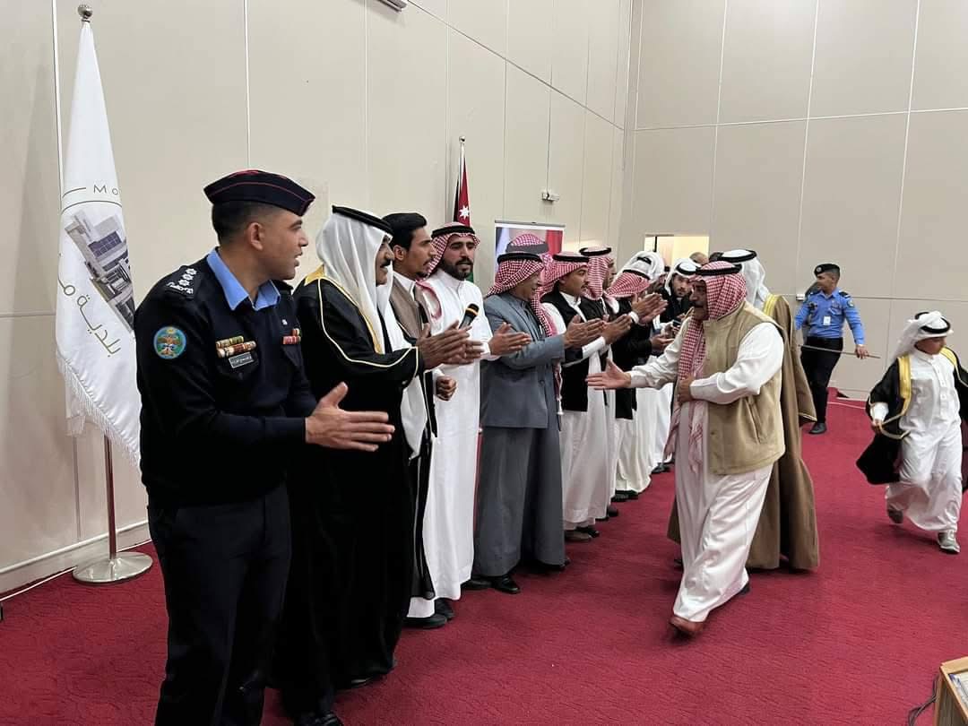 ووقع الحضور على وثيقة للتأكيد على الوقوف خلف القيادة الهاشمية والأجهزة الأمنية ليبقى الاردن على الدوام واحة للأمن والاستقرار، كما وافتتح العميد الفايز البازار التراثي والذي أقامته سيدات المجتمع المحلي.