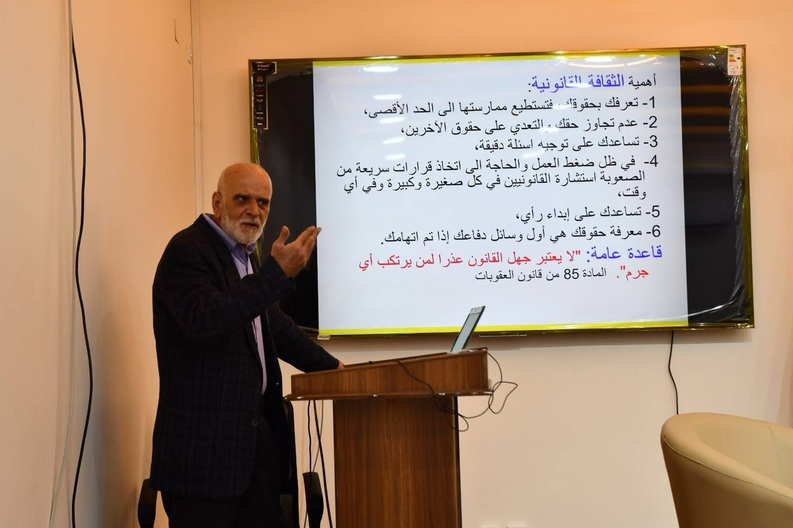 بدوره، تحدث شقير عن اهمية الثقافة القانونية للأفراد، وضرورة معرفة حقوق الأفراد القانونية عند تعرضهم لأي من الجرائم الإلكترونية التي تتم عبر شبكة الإنترنت حتى لا يقع في المحظورات دون قصد.