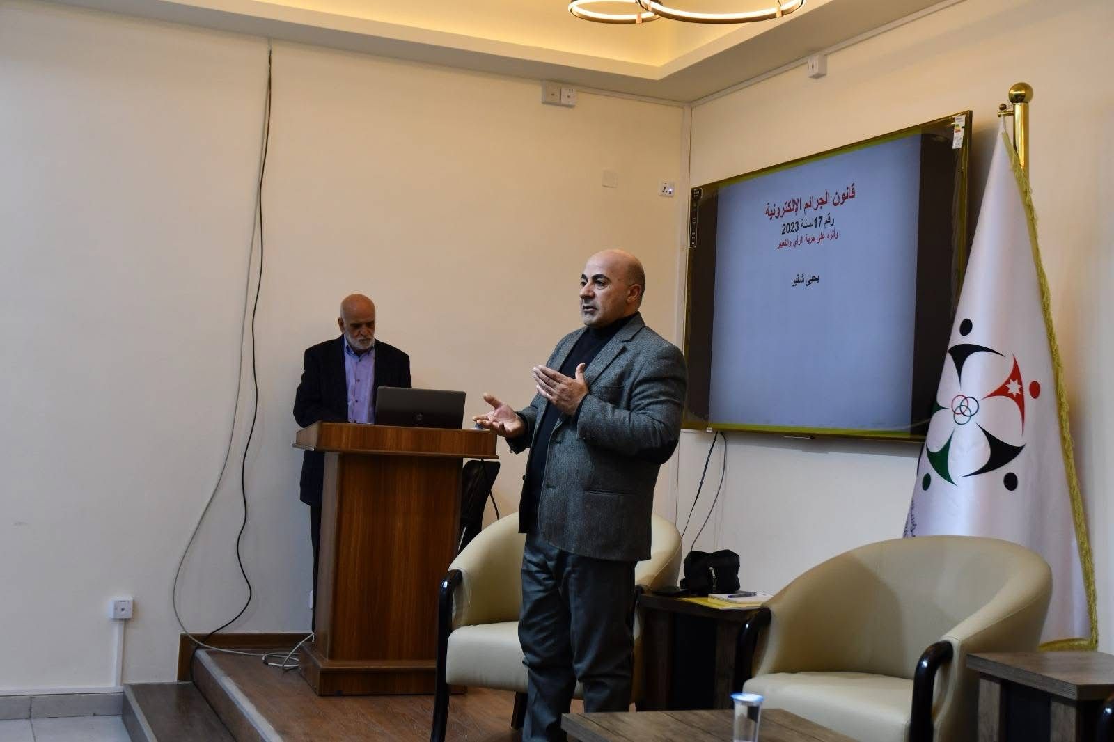 .نيابةً عن عطوفة مدير عام المؤسسة التعاونية الأردنية، افتتح مساعد المدير المهندس غالب حدادين، اليوم الخميس، ورشة توعوية حول قانون الجرائم الإلكترونية في مركز التدريب التعاوني، بمشاركة خبير التشريعات القانونية الصحفي يحيى شقير، والإعلامي سلمان الحنيفات.