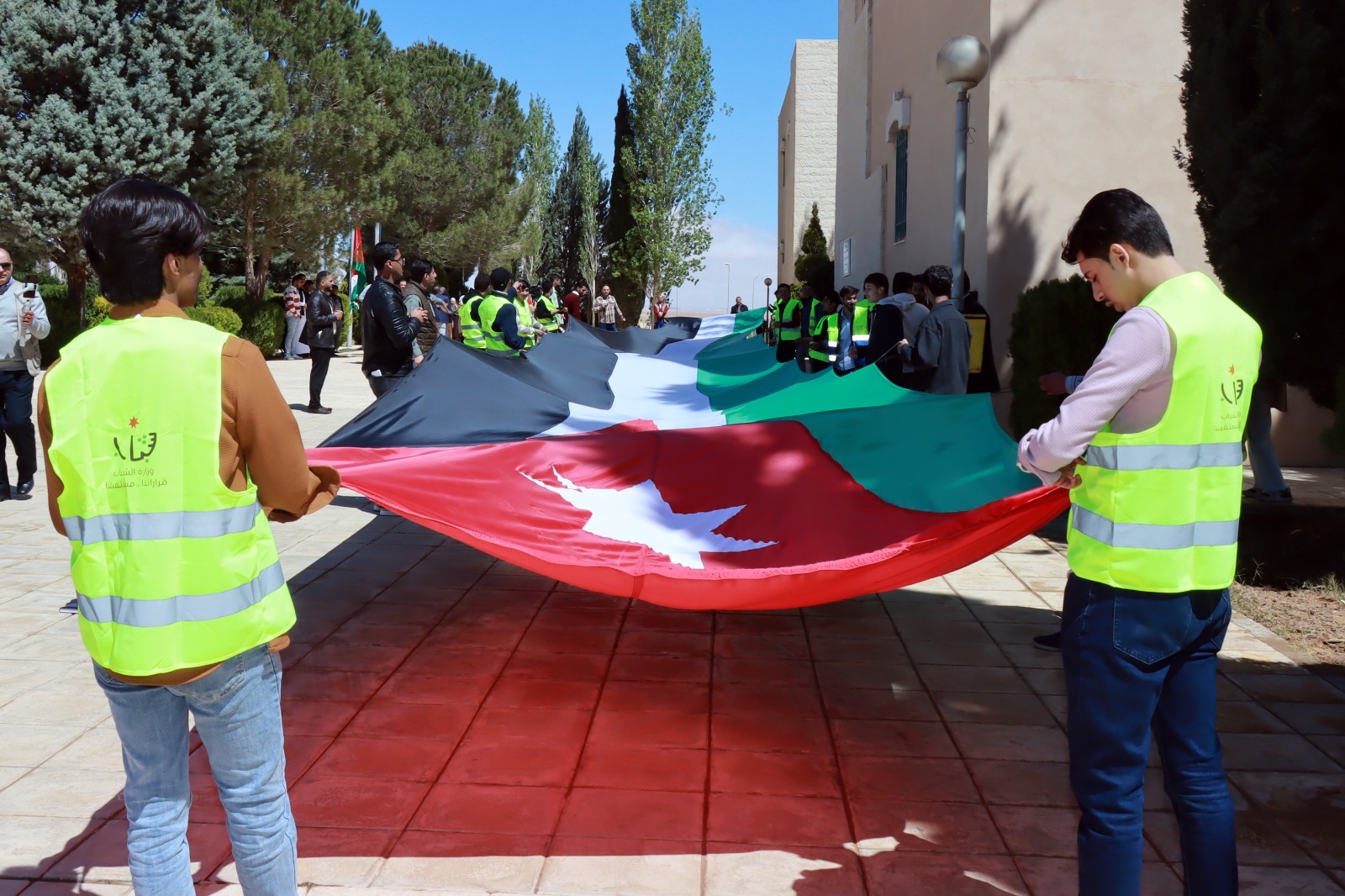 تحت رعاية رئيس جامعة الحسين بن طلال، الأستاذ الدكتور عاطف الخرابشة، نظمت عمادة شؤون الطلبة بالتعاون مع مديرية شباب معان وهيئة شباب كلنا الأردن / معان، احتفالاً بمناسبة يوم العلم الأردني، الذي يصادف السادس عشر من نيسان من كل عام، وذلك ضمن فعاليات حملة "علمنا عالٍ".