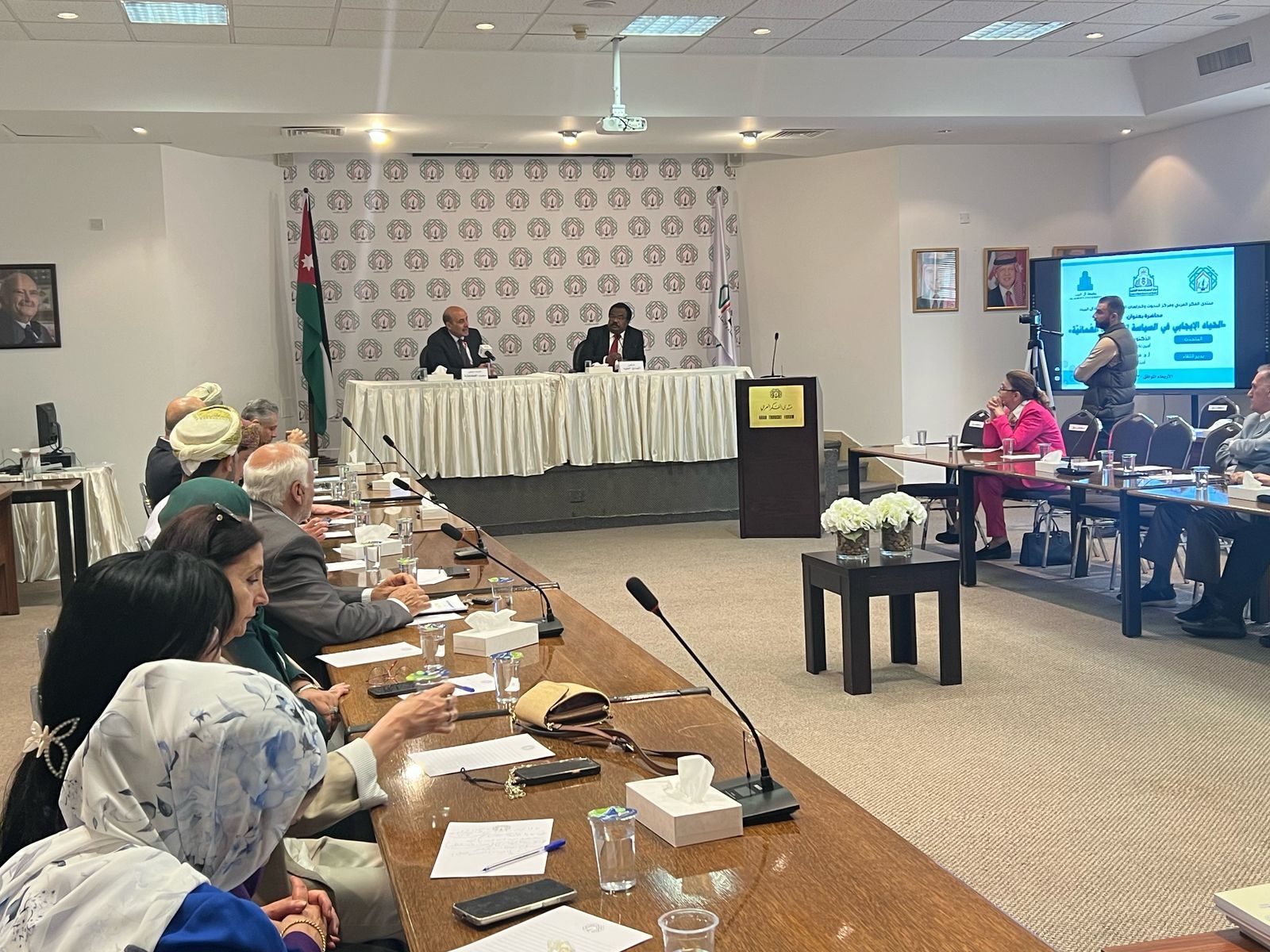 وقد حضر المحاضرة كلّ من السفير العماني والسفير اليمني لدى الأردن، وعددًا من الشخصيات الأكاديمية والسياسية.