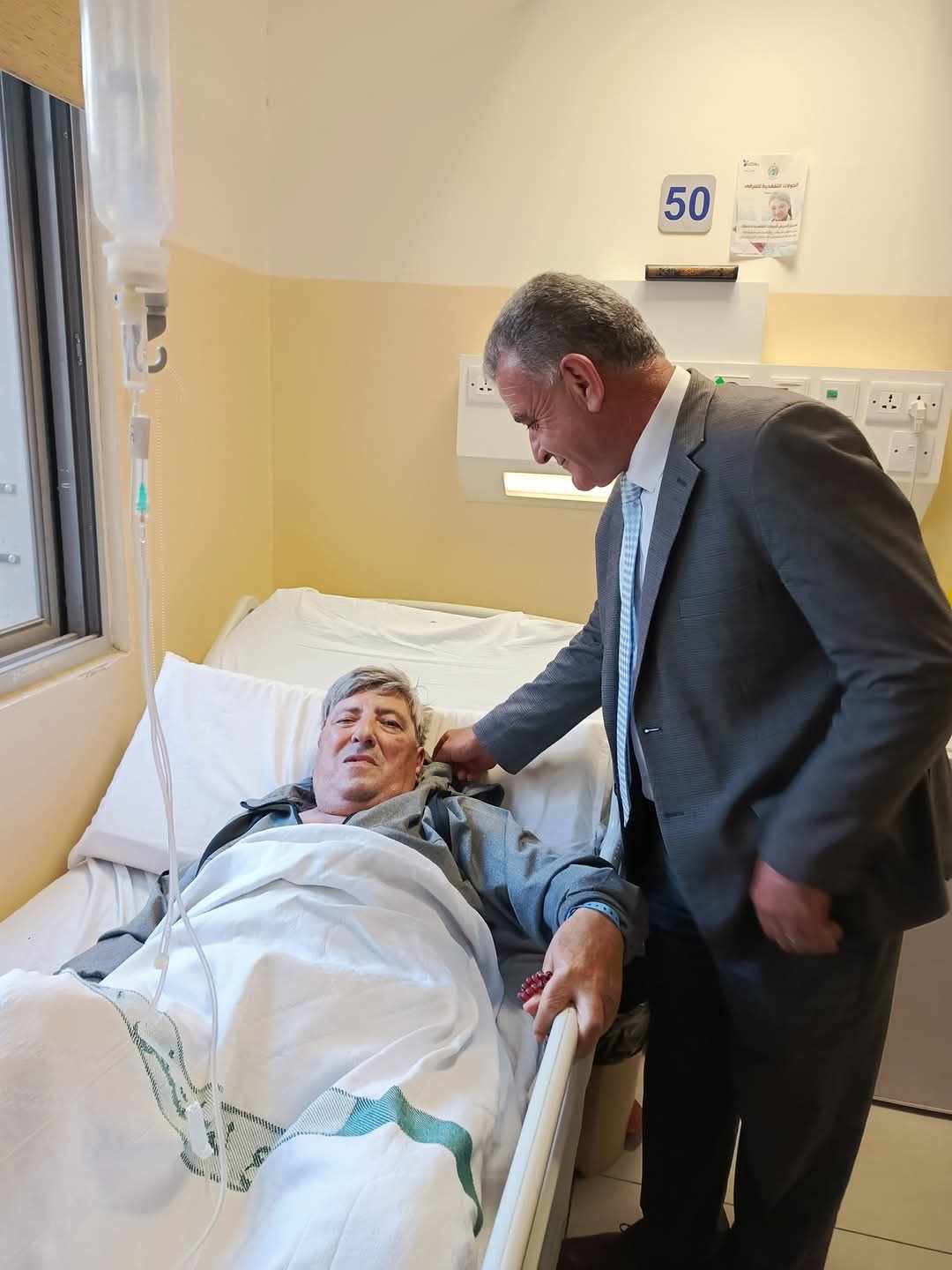 عطوفة امين عام وزارة الثقافة الدكتور نضال العياصرة يزور الفنان فؤاد حجازي في مدينة الحسين الطبية اثر تعرضه لوعكة صحية