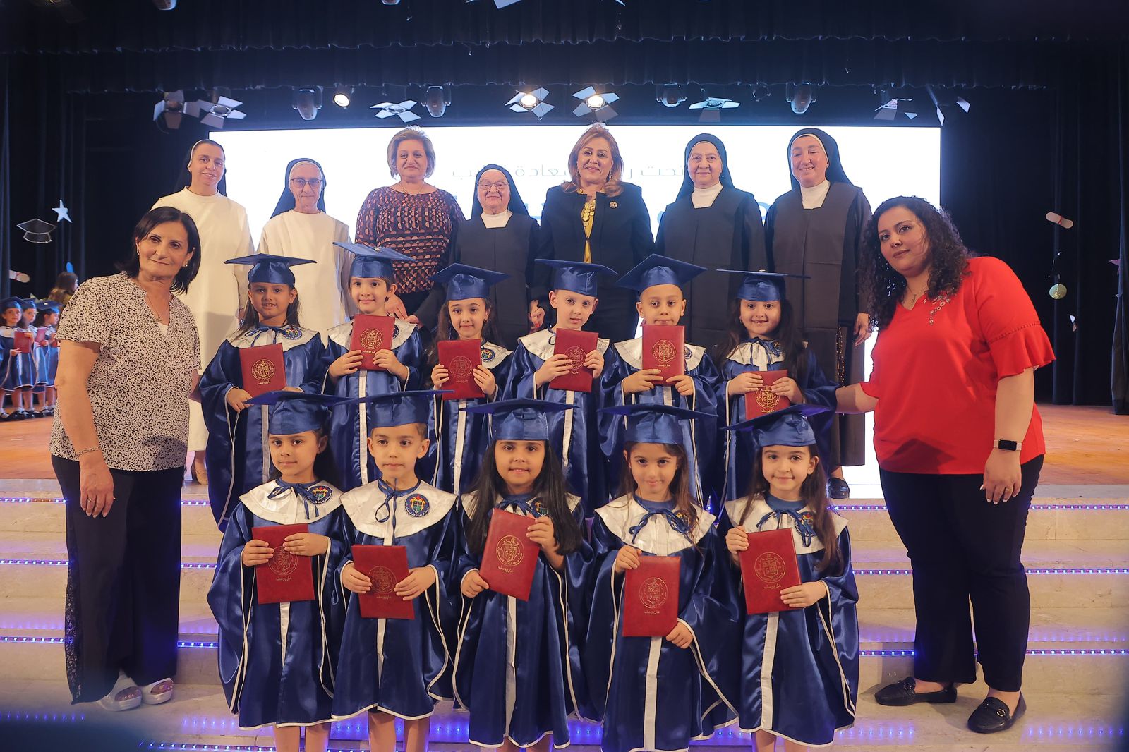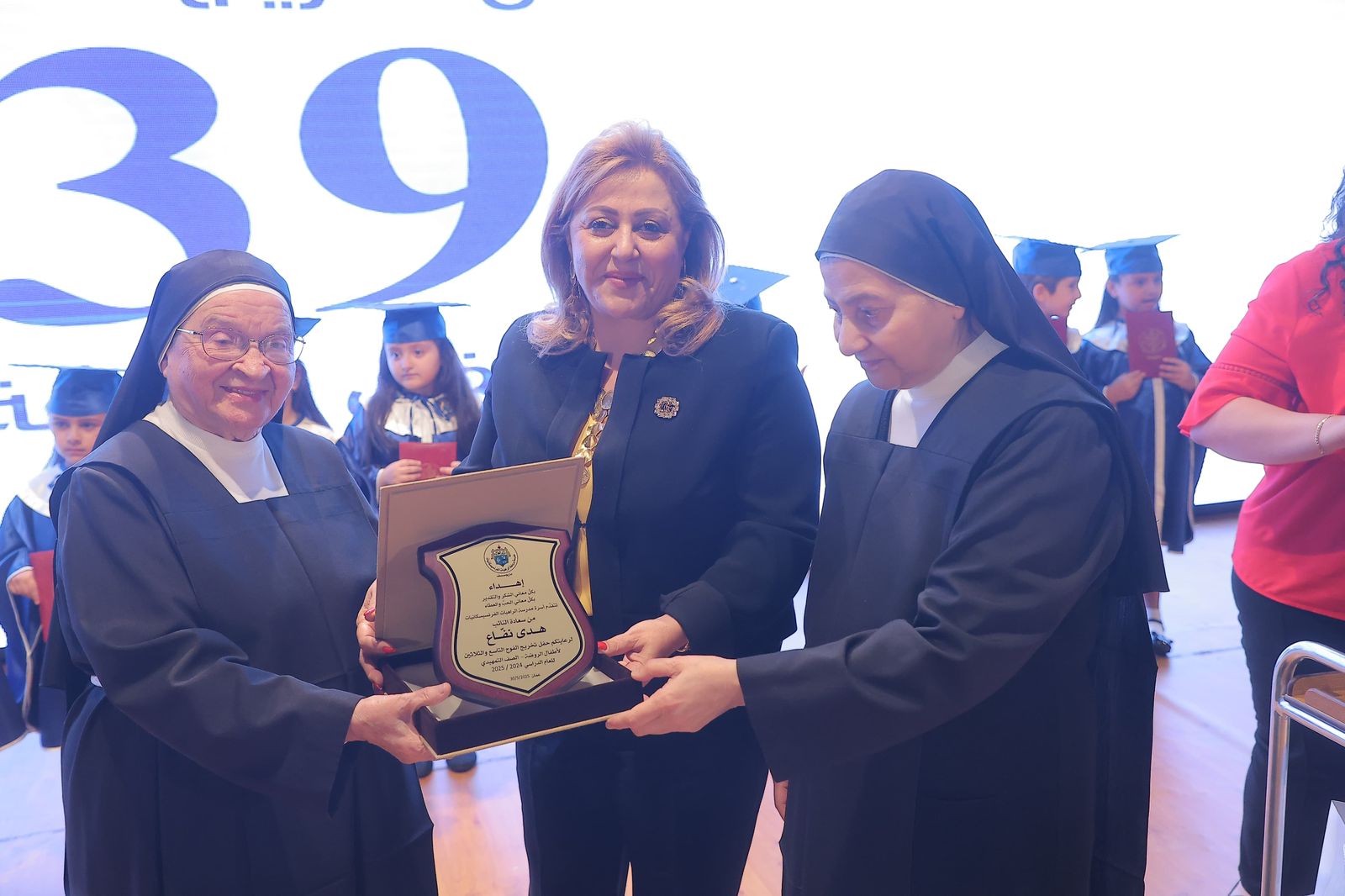 وقالت نفاع: "نلتقي اليوم في مناسبة تنبض بالفرح، لنحتفل بمحطة غالية في مسيرة أحبّتنا الصغار، حيث تنتهي مرحلة أولى من الرحلة، ويُفتح بابٌ جديد نحو مستقبل مشرق"، مشيدة بالدور التربوي الكبير الذي تقوم به الراهبات والمعلمات في غرس القيم وتعزيز الإيمان في نفوس الأطفال.