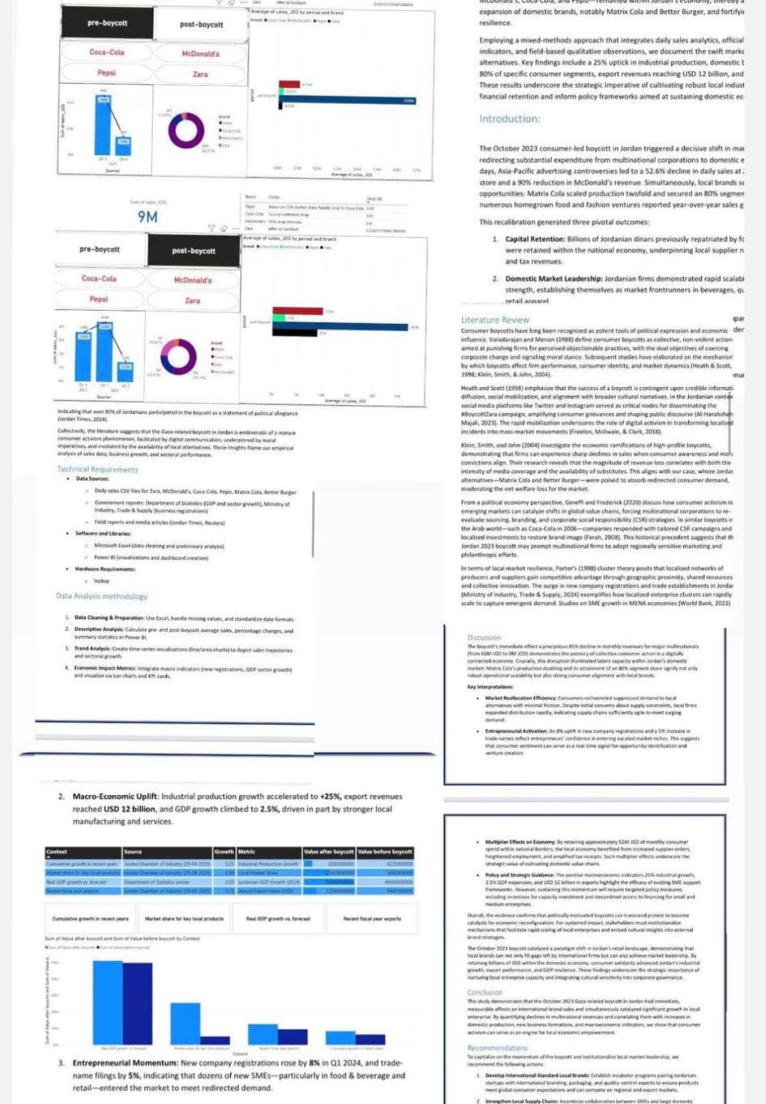 يتناول المشروع تأثير الحملات الشعبية على أداء الأسواق والشركات العالمية، من خلال تحليل سلوك المستهلك الأردني في ظل الظروف السياسية والاجتماعية التي شهدها الشارع العربي خلال الفترة المذكورة. وأظهرت الدراسة تراجعًا في مبيعات بعض العلامات التجارية العالمية، مقابل تنامٍ ملحوظ في الحصة السوقية للمنتجات المحلية.