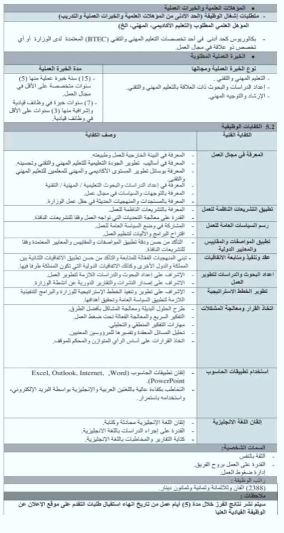 #شاغر وظيفة أمين عام وزارة التربية والتعليم لشؤون التعليم المهني والتقني