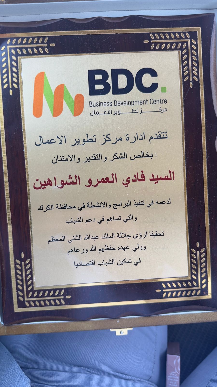 مركز تطوير الأعمال (BDC) يكرم ناشر موقع "بلكي نيوز" لدوره في تمكين الشباب بالكرك