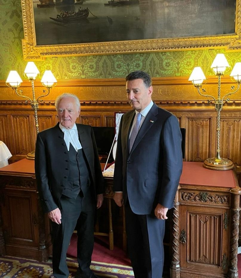 وأكد رئيس مجلس اللوردات على أهمية تكثيف الجهود لوقف الحرب على غزة، مؤكداً أن حل الدولتين هو السبيل لتحقيق الأمن والاستقرار في المنطقة، مؤكداً ان سبيل أمن المنطقة عبر إقامة الدولة الفلسطينية على خطوط الرابع من حزيران لعام 1967.