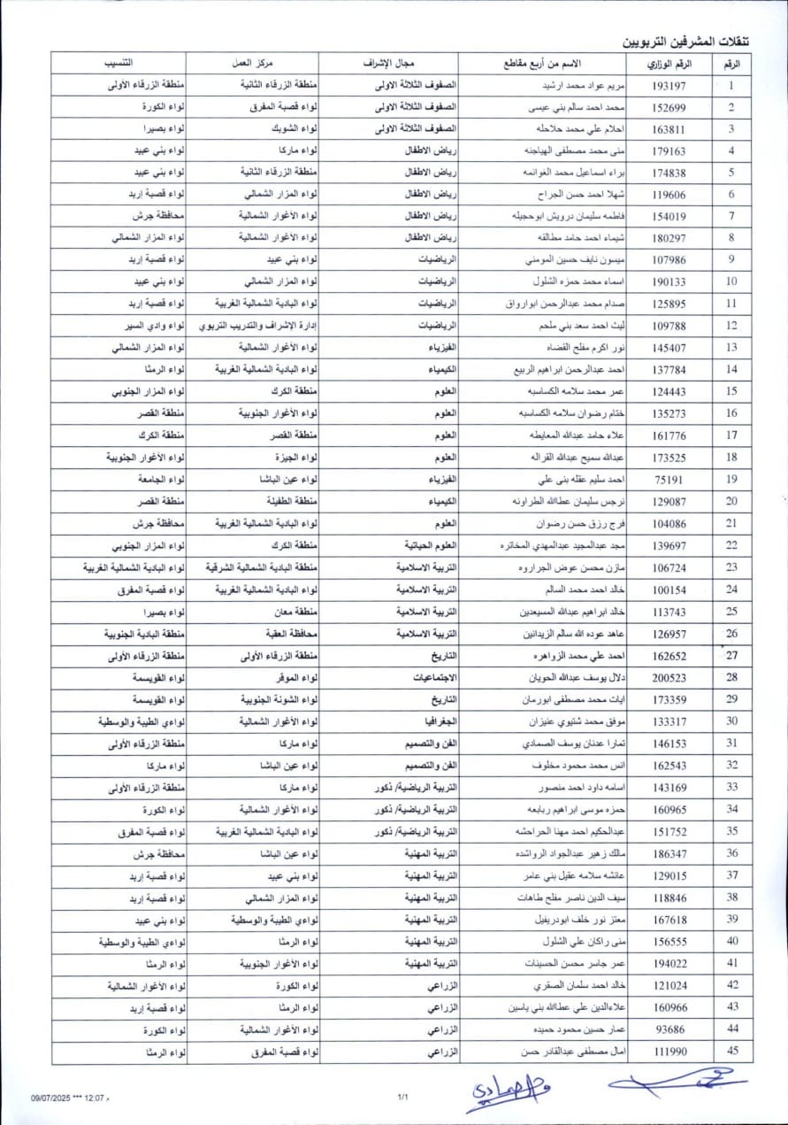 وزارة التربية والتعليم تعلن عن ترقية دفعة جديدة من الكفاءات إلى وظيفة مشرف تربوي وأخصائي مبحث (اسماء )