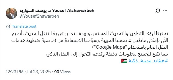 أمانة عمّان تربط خدمات النقل مع "خرائط غوغل" لإتاحة معلومات دقيقة عن الرحلات