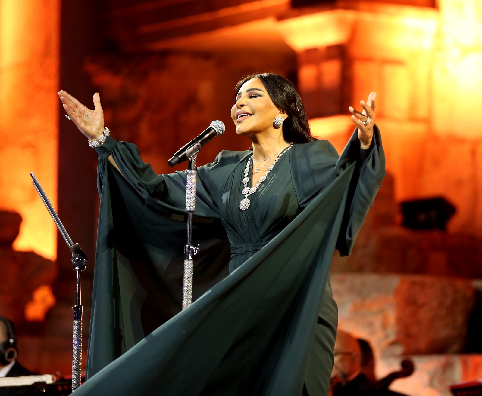 كثر سرب الحنين إلّا عابر بخفّة". لتواصل تقديم روائعها من البوماتها القديمة والجديدة وسط هتاف الجماهير، ومنها أغنية "ع العين موليتين".