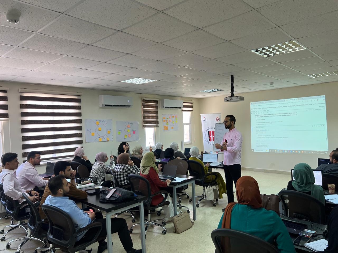 واشتمل التدريب، الذي استمر على مدار خمسة أيام، على تدريبات عملية متقدمة في مجالي الذكاء الاصطناعي وتحليل البيانات، تضمنت التعرف على مبادئ التعلم الآلي، وخوارزميات التعلم الخاضع وغير الخاضع للإشراف، ونماذج التصنيف والتوقع (الثنائي والمتعدد)، مع تطبيقات عملية باستخدام لغة البرمجة بايثون.