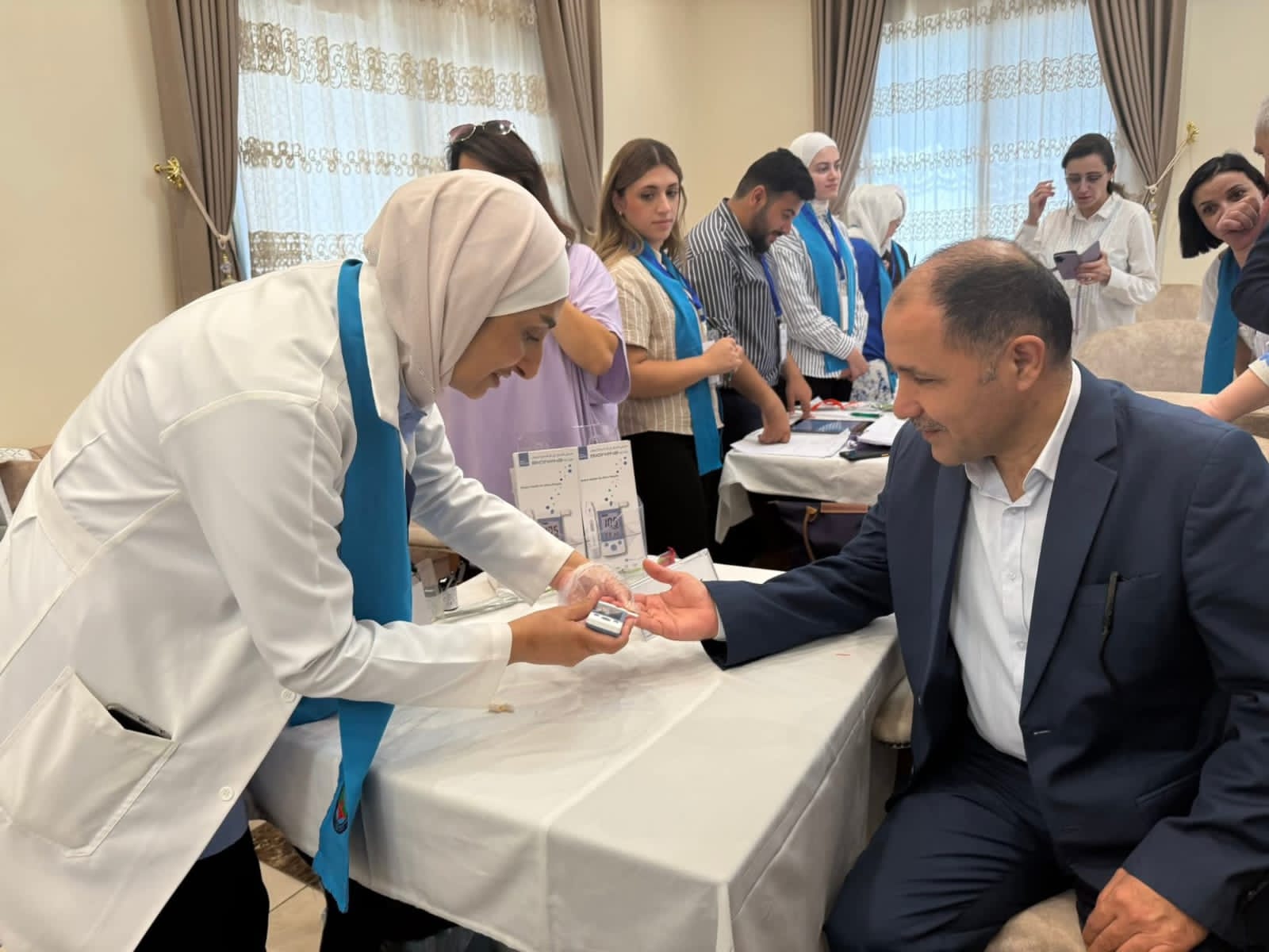 و نخبة من أطباء الاختصاص في مجالات السكري، الباطنية، العيون، طب الأسرة، القدم السكرية، المختبرات، التغذية، السمعيات، والتثقيف الصحي، وجرى تقديم الفحوصات والاستشارات مجاناً لخدمة أبناء المجتمع المحلي.