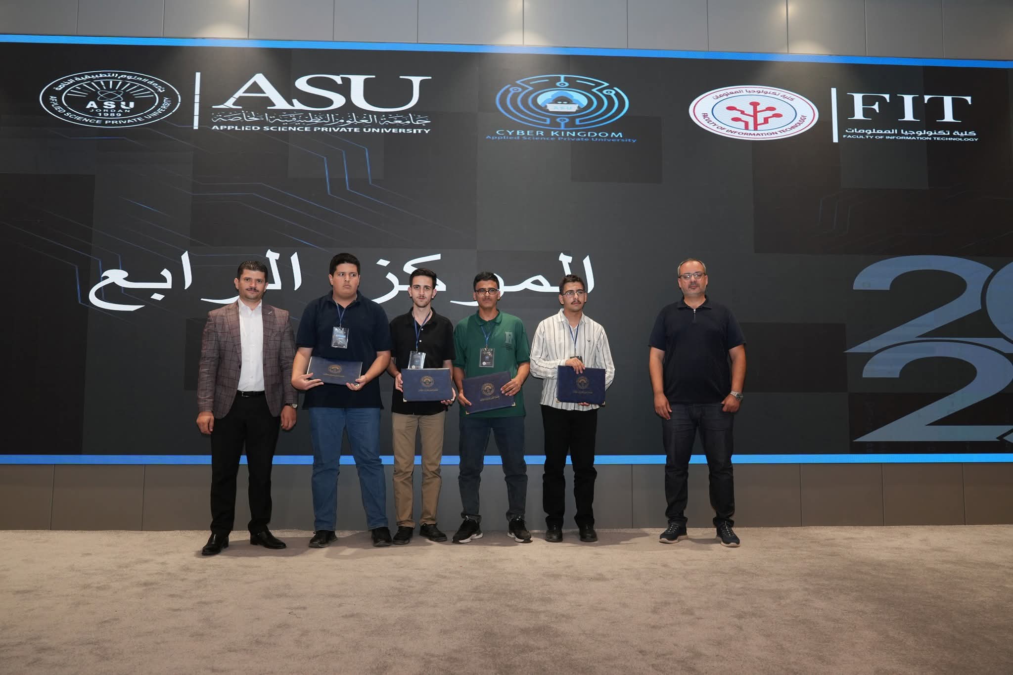 - الفائز بالمركز الثامن هو فريق D-dos team والمكون من الطلبة: عبدالعزيز الزغول، علي ابراهيم ريان، اسلام تيسير مسودة، عمر احمد خير الدين، حيث حصلوا على منحة دراسية 30% على رسوم الساعة المعتمدة لدراسة أي تخصص في كلية تكنولوجيا المعلومات.