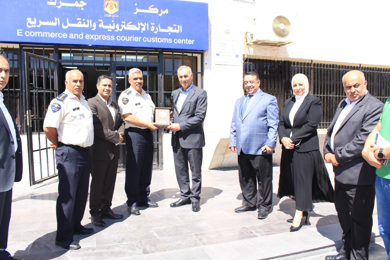 وأطلع العدوان خلال زيارتة على الخدمات التي يقدمها مركز جمرك التجارة الإلكترونية والنقل السريع حيث قدم مدير المركز عقيد جمارك يحيى الفراهيد