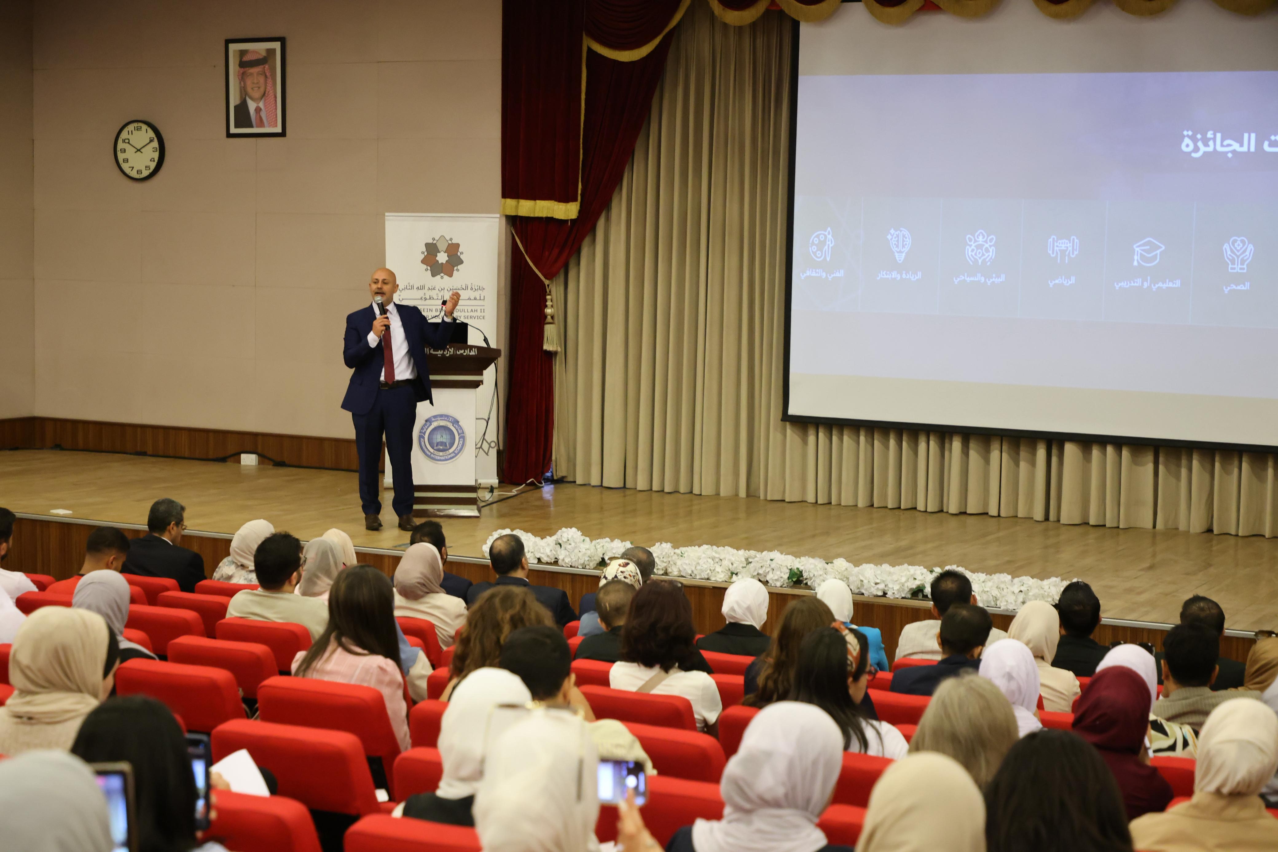 نظمت وزارتا الشباب والتربية والتعليم في مسرح المدارس الأردنية الدولية، جلسة تعريفية بالدورة الثالثة من جائزة الحسين بن عبدالله الثاني للعمل التطوعي، بحضور مساعد الأمين العام للشؤون الفنية والاستراتيجية الدكتور ياسين الهليل، ومدير إدارة الأنشطة في وزارة التربية والتعليم الدكتور عبد الحكيم الشوابكة، ومديرة المدارس الأردنية الدولية الدكتورة جمانة أبو حجلة، ومندوب التعليم الخاص الدكتور اياد الصرايرة إلى جانب عدد من مديري ومدرسي المدارس الخاصة.