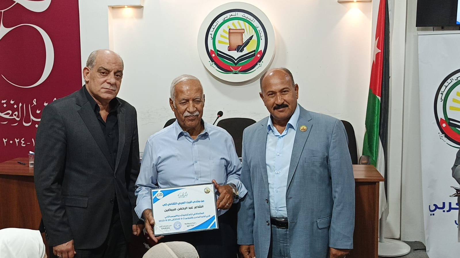 وفي ختام الأمسية، قدّم رئيس المنتدى درع التكريم لدارة المشرق للفكر والثقافة، تسلّمه الشاعر علي الفاعوري، إضافة إلى شهادات شكر وتقدير للشعراء المشاركين. وحظيت الفعالية بحضور واسع من الأدباء والمثقفين والمهتمين بالشأن الثقافي، الذين أشادوا بمبادرات منتدى البيت العربي ودوره في إثراء المشهد الثقافي الأردني من خلال أمسياته وفعالياته النوعية.