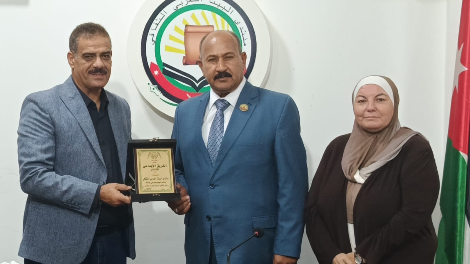 وفي بادرة مميزة، قدّم منتدى الفريق الإبداعي درعًا تكريميًا إلى منتدى البيت العربي الثقافي، تسلّمه رئيس المنتدى المهندس صالح الجعافرة وأمينة السر الأديبة ميرنا حتقوة، من رئيس منتدى الفريق الإبداعي الكابتن رائد عساف، تقديرًا لدور المنتدى في دعم الحراك الثقافي.