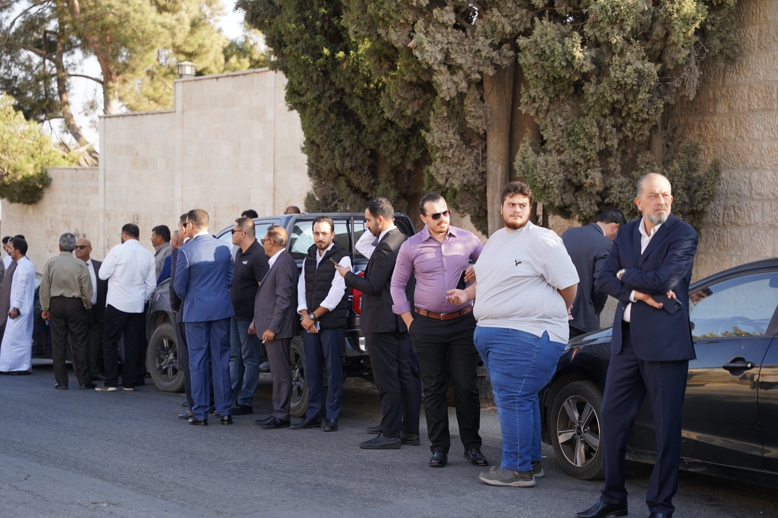 النائب السابق خالد الفناطسة ترأس الجاهة، التي وصفت بأنها "خمس نجوم" لكثرة الحضور من الوجهاء وشيوخ الأردن ورجال الصحافة والإعلام. وحضر الجميع للتأكيد على مكانة الراحل نايف المعاني ومحبة الناس له ولعائلته.