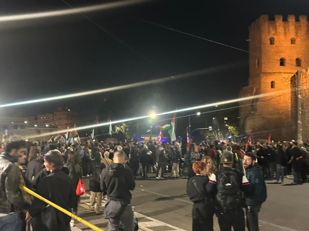 انطلقت المظاهرة من ساحة الكولوسيوم متجهة نحو المحطة رافعين الأعلام الفلسطينية ولافتات تدعو إلى وقف إطلاق نار دائم، وإدخال المساعدات الإنسانية دون قيود. كما ردد المتظاهرون هتافات منددة بالصمت الدولي على الأوضاع الإنسانية الكارثية في القطاع.
