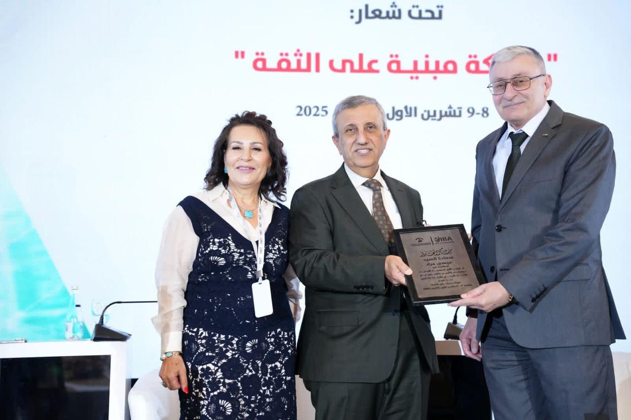 وخلال الجلسة الافتتاحية للمؤتمر سلّم معالي الدكتور عادل شركس درعاً تكريمياً للسيد رضا دحبورتقديراً لدعم الشركة للمؤتمر.