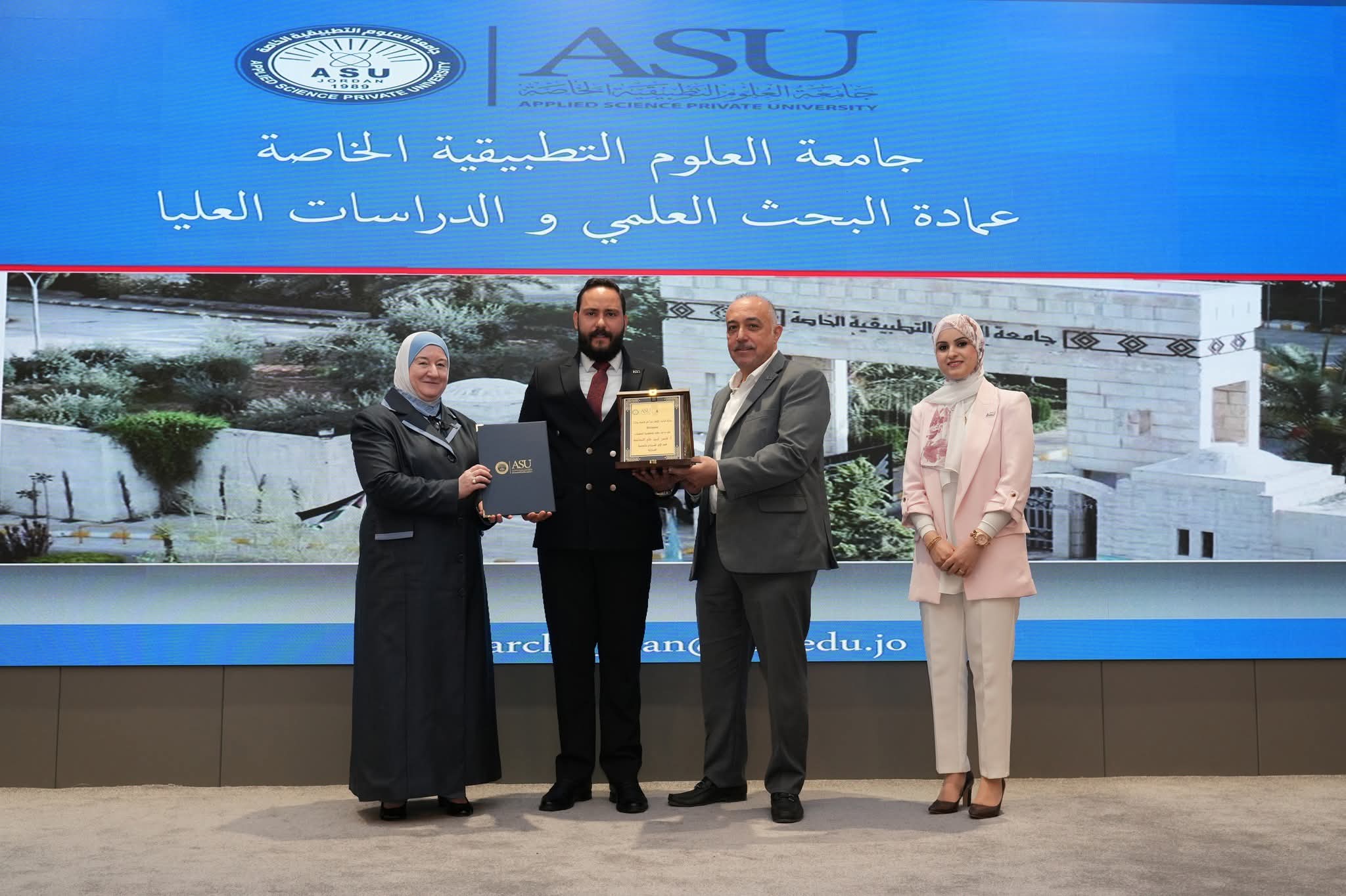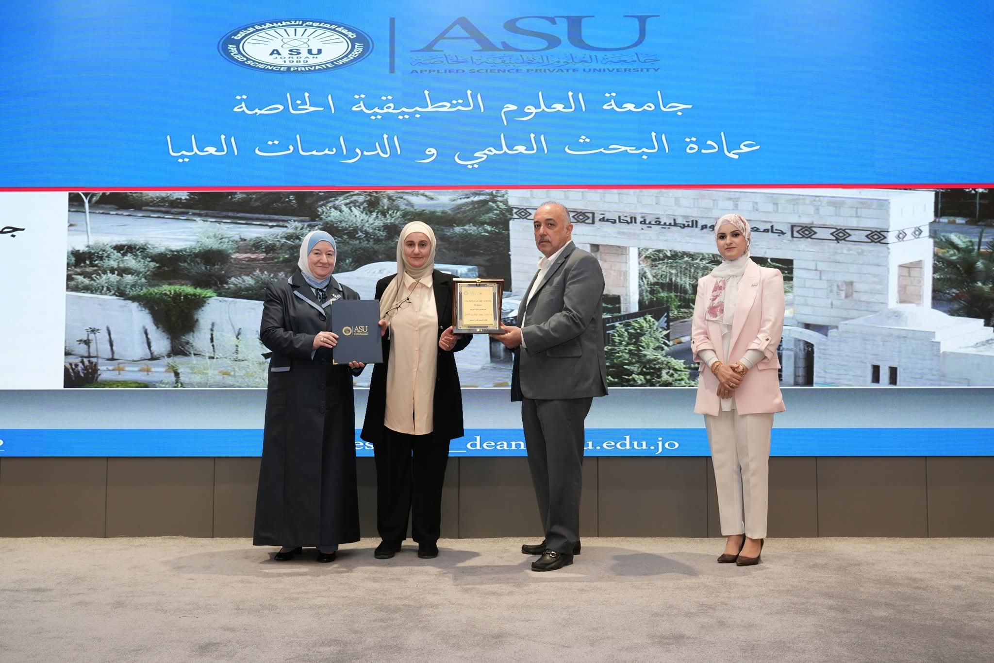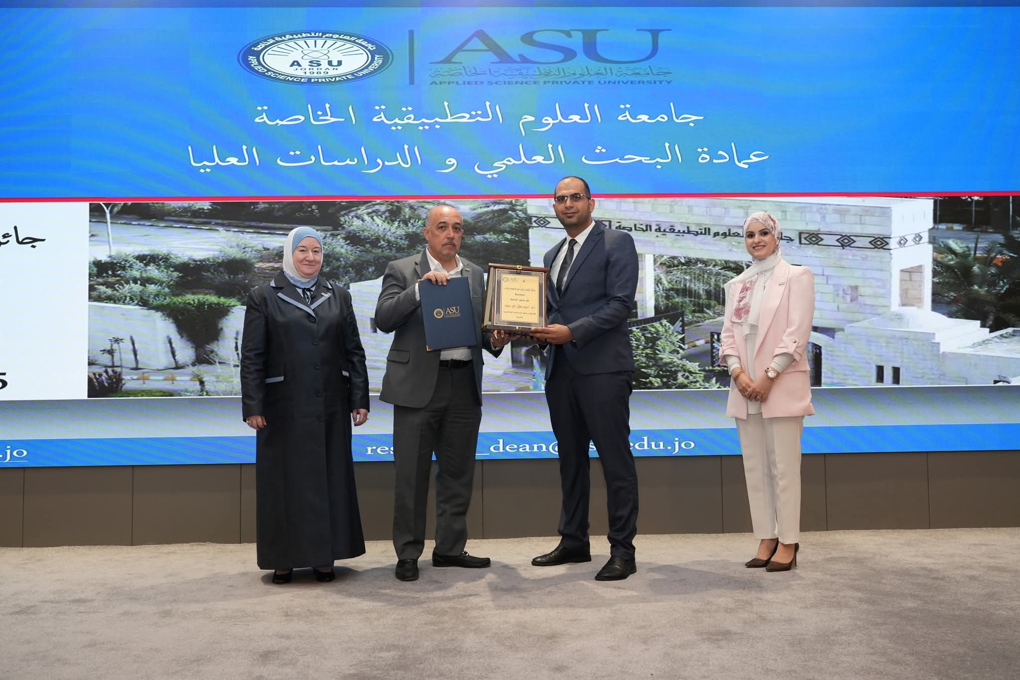 تتقدّم جامعة العلوم التطبيقية الخاصة بأحرّ التهاني والتبريكات إلى الفائزين بجوائز البحث العلمي على مستوى الجامعة والكليات للعام الأكاديمي 2024-2025، تقديرًا لجهودهم المتميزة وإنجازاتهم البحثية التي تُجسّد روح الإبداع والتميّز الأكاديمي في الجامعة، وتُعزّز مسيرتها في دعم البحث العلمي والابتكار.