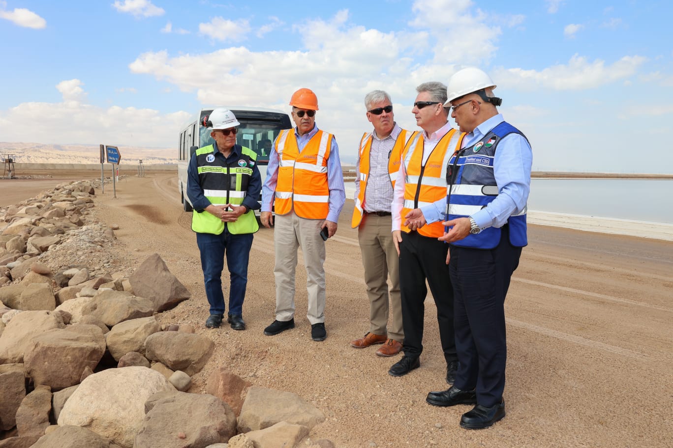 غور الصافي – استقبل رئيس مجلس إدارة شركة البوتاس العربية المهندس شحادة أبو هديب والرئيس التنفيذي الدكتور معن النسور، السفير الكندي لوي-مارتن أوميه والسفير الأسترالي في الأردن بيرنارد لينش، خلال زيارة ميدانية إلى موقع الشركة في غور الصافي، حيث تعرّف السفيران على طبيعة العمل في الشركة وأبرز مشاريعها وخططها المستقبلية ودورها الريادي في سوق الأسمدة العالمي.